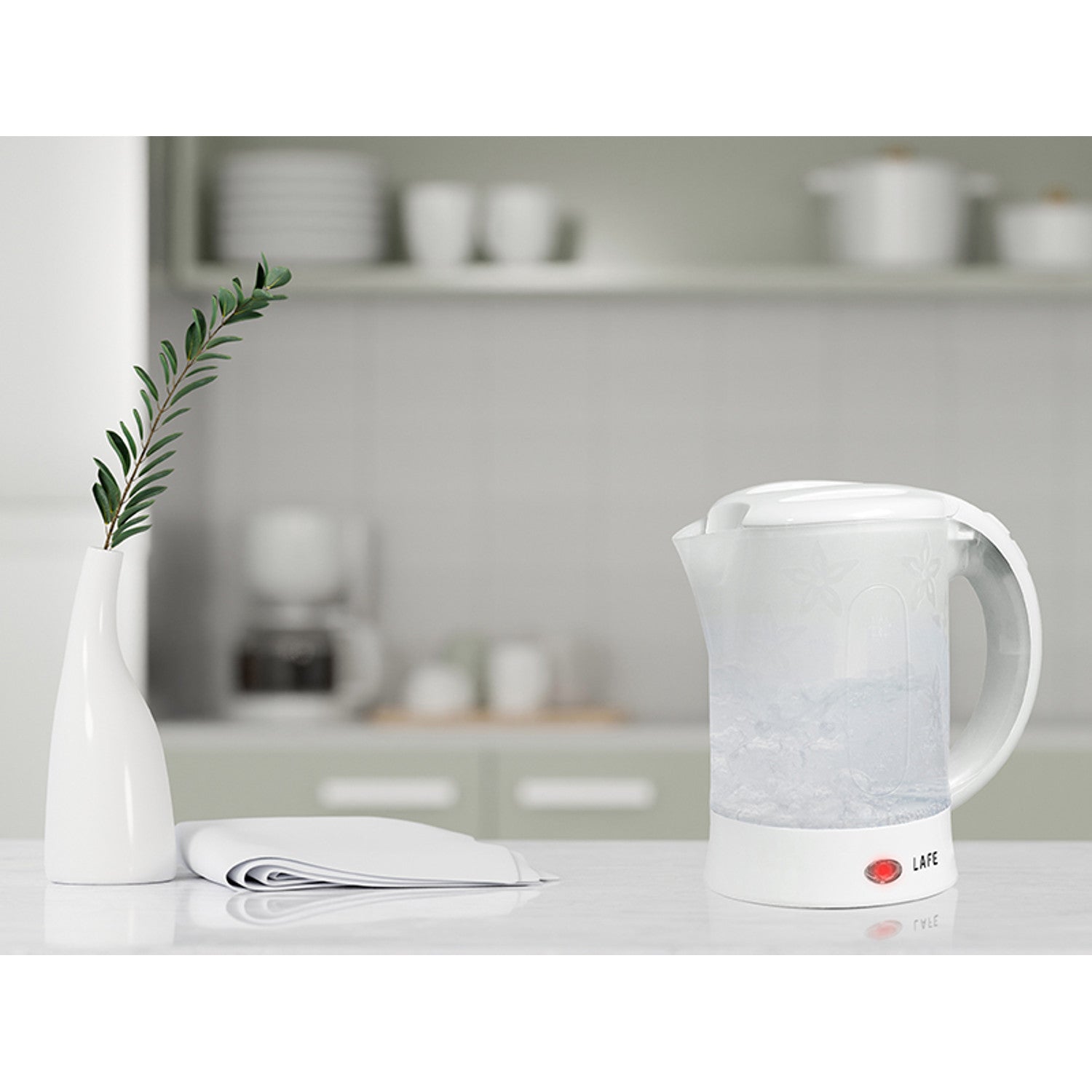 The compact dimensions of the kettle make the device take up little space and easily fit into a suitcase or travel bag. Popular in travel kettles, the capacity of 600 ml allows you to boil water in an amount that is successfully enough for about 2 cups of drink. Enjoy hot coffee or tea at the campsite during breakfast. LAFE kettle is equipped with a control lamp, which makes the use of the device even more convenient.