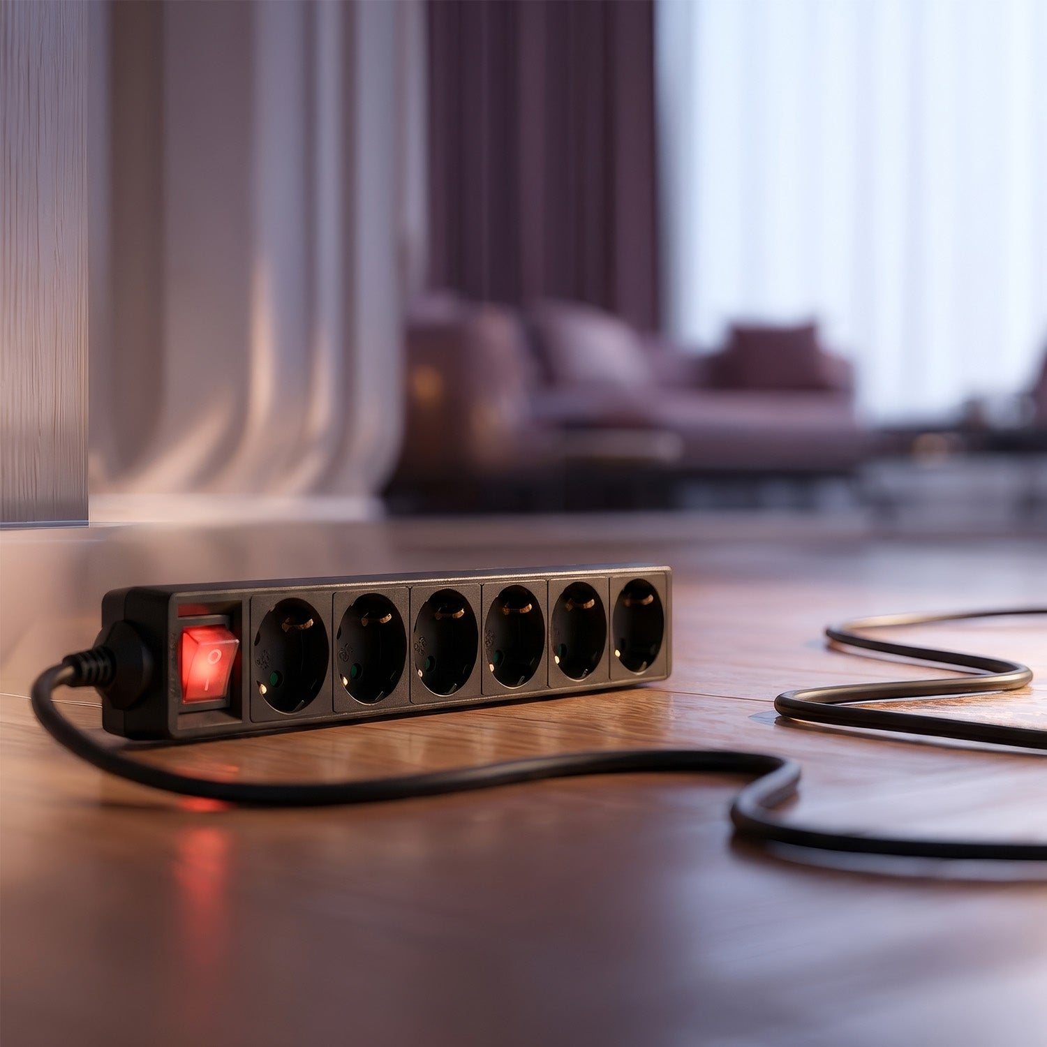 Many electrical appliances have an unnecessary power consumption in standby mode. Switching turns on or off all devices connected to the power strip.