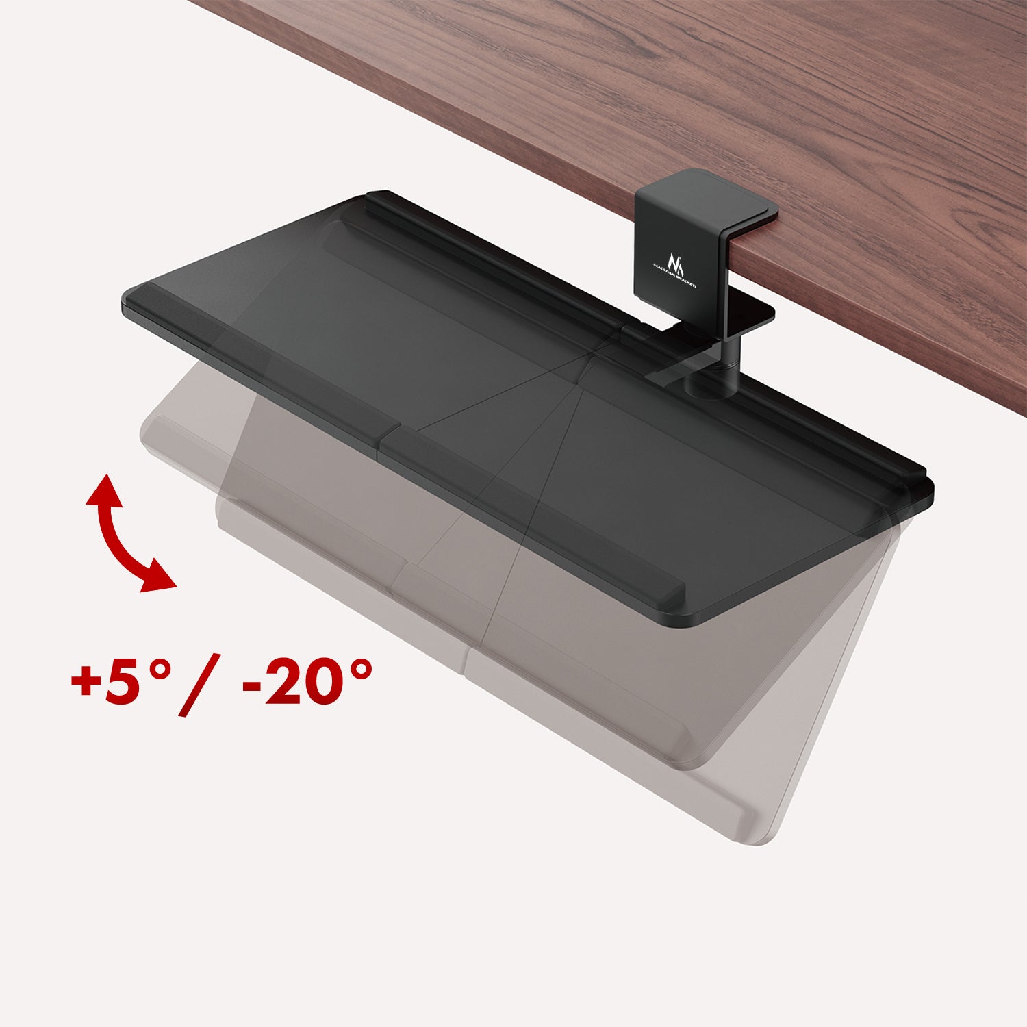 The MC-108 under-desk keyboard holder is a modern and ergonomic solution that significantly improves the comfort of working at your desk. The holder is mounted with a sturdy clamp, so there is no need to drill - it can be easily mounted and dismounted without damaging the desktop. The large surface will accommodate a keyboard and mouse, and thanks to the built-in wrist rest, the user gains additional comfort and support for the hands during long hours of work.