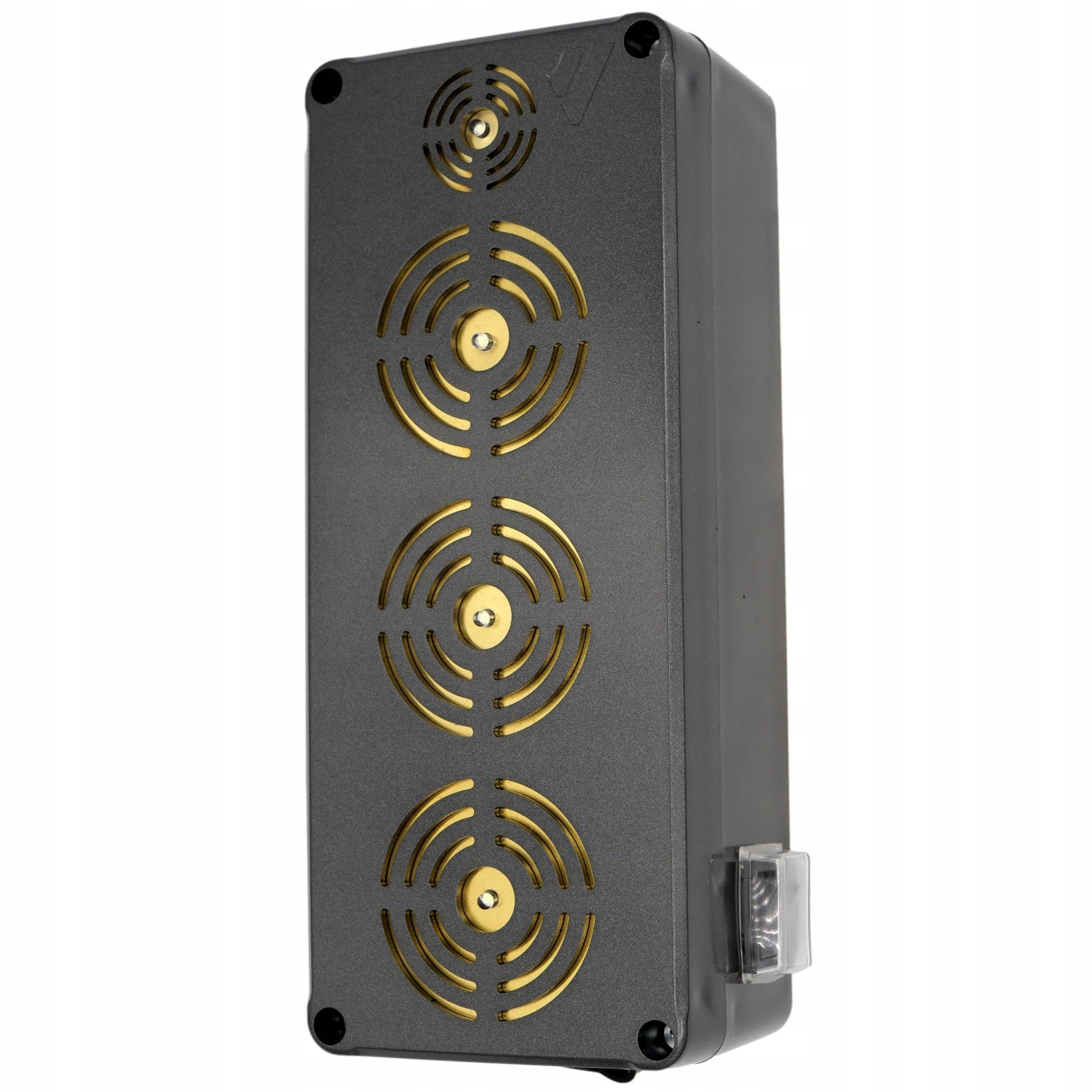 The device uses powerful piezo speakers made of brass, which are additionally protected by a grille. Piezo speakers made of brass are characterized by great resistance to factors such as low, high temperature and moisture. Ordinary black diaphragm speakers used in other devices, by design, are prone to damage and can cause short circuits in the installation. In addition, the lack of grilles in this type of devices, exposes the equipment to accidental mechanical damage.