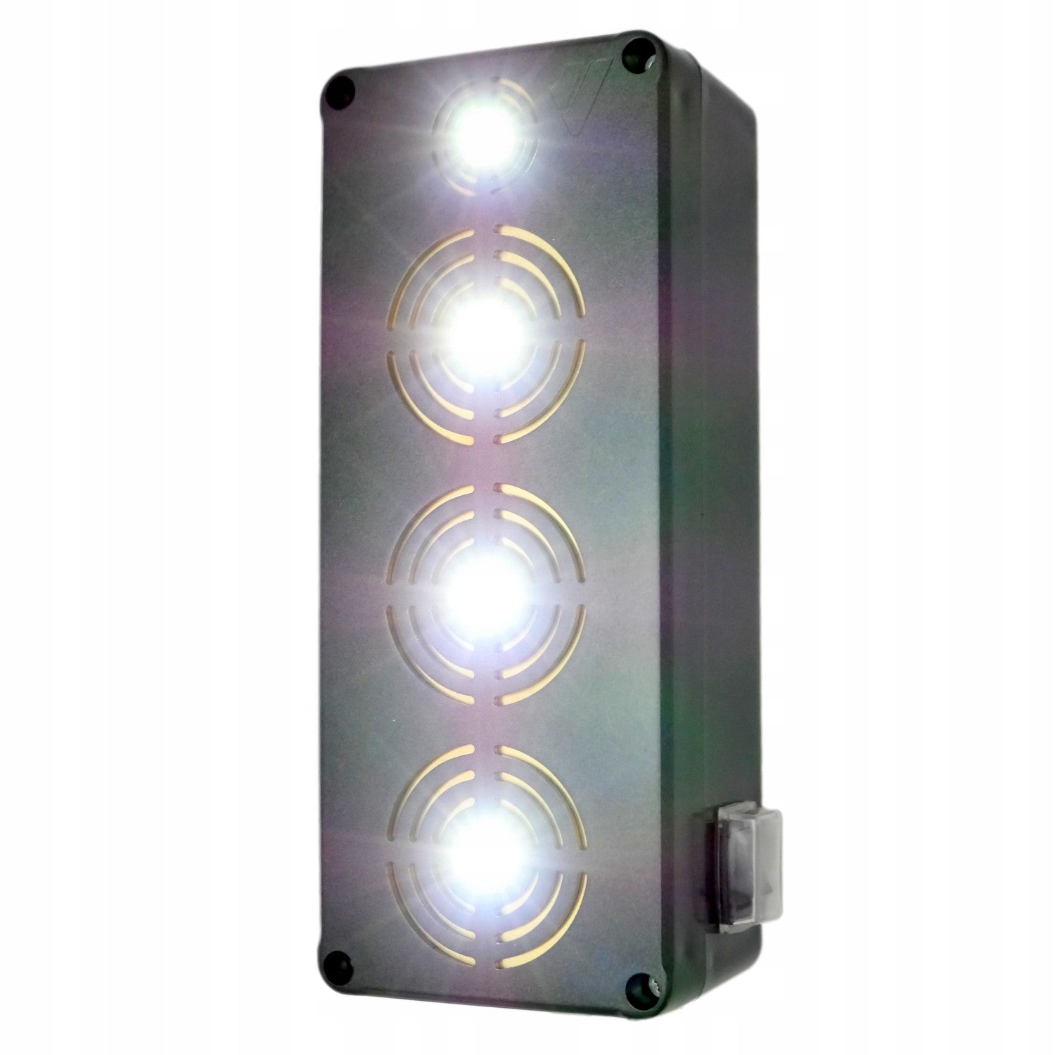 - Professional, waterproof industrial housing (IP65 rated), extremely resistant to mechanical damage, sunlight, rain, frost and wind. The housing contains a silicone gasket, has been bolted together with strong screws and the switch located on the device, has been protected by a silicone cap. The device has been fully protected so that no dirt or water can get inside the housing.