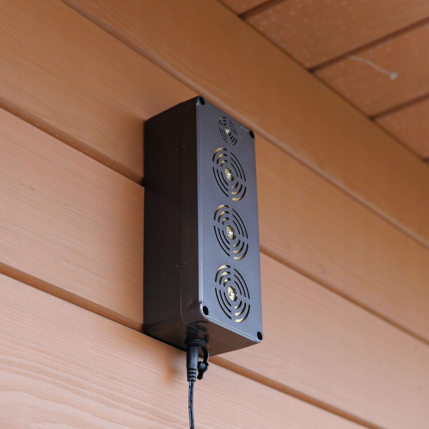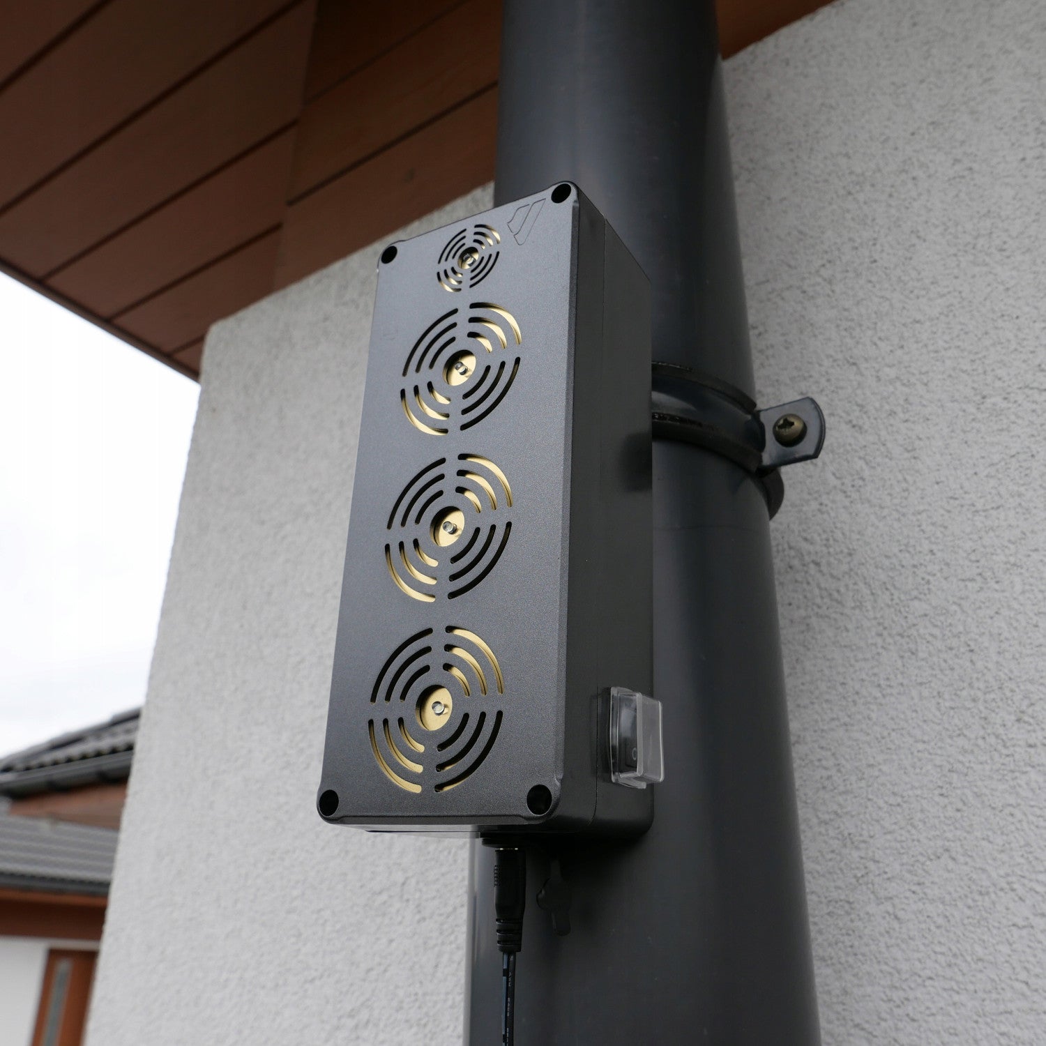 The device has installed as many as four piezo speakers - three 50mm diameter and one 35mm diameter, as well as four high-brightness LEDs. The whole is complemented by an airtight housing with IP65 protection class, which allows the repellent to be used both indoors and outdoors. The Polish device was designed for the climatic conditions prevailing in our country - it is resistant to sunlight, rain, frost and wind.
