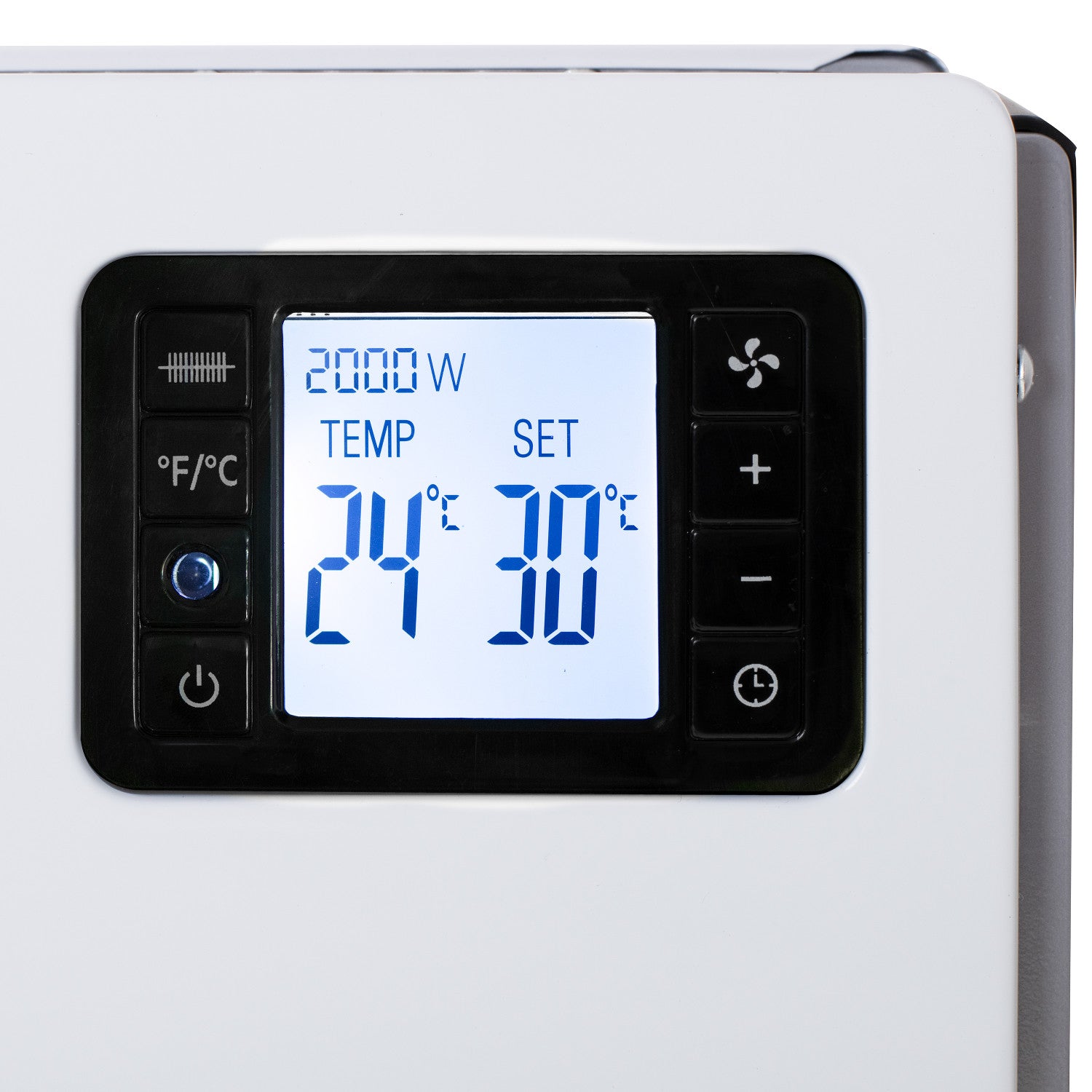 In addition to the fact that the convection heater looks elegant in interiors, anyone can really handle its operation. On the device, in a prominent place, there is an LCD control panel, where you can read the current settings, and there is also a remote control included, so you can adjust it even from a distance. In addition, you can set a timer when you want to start it. On the unit, you can select one of three heating levels (750 W/1250 W/2000 W) and adjust the thermostat yourself.