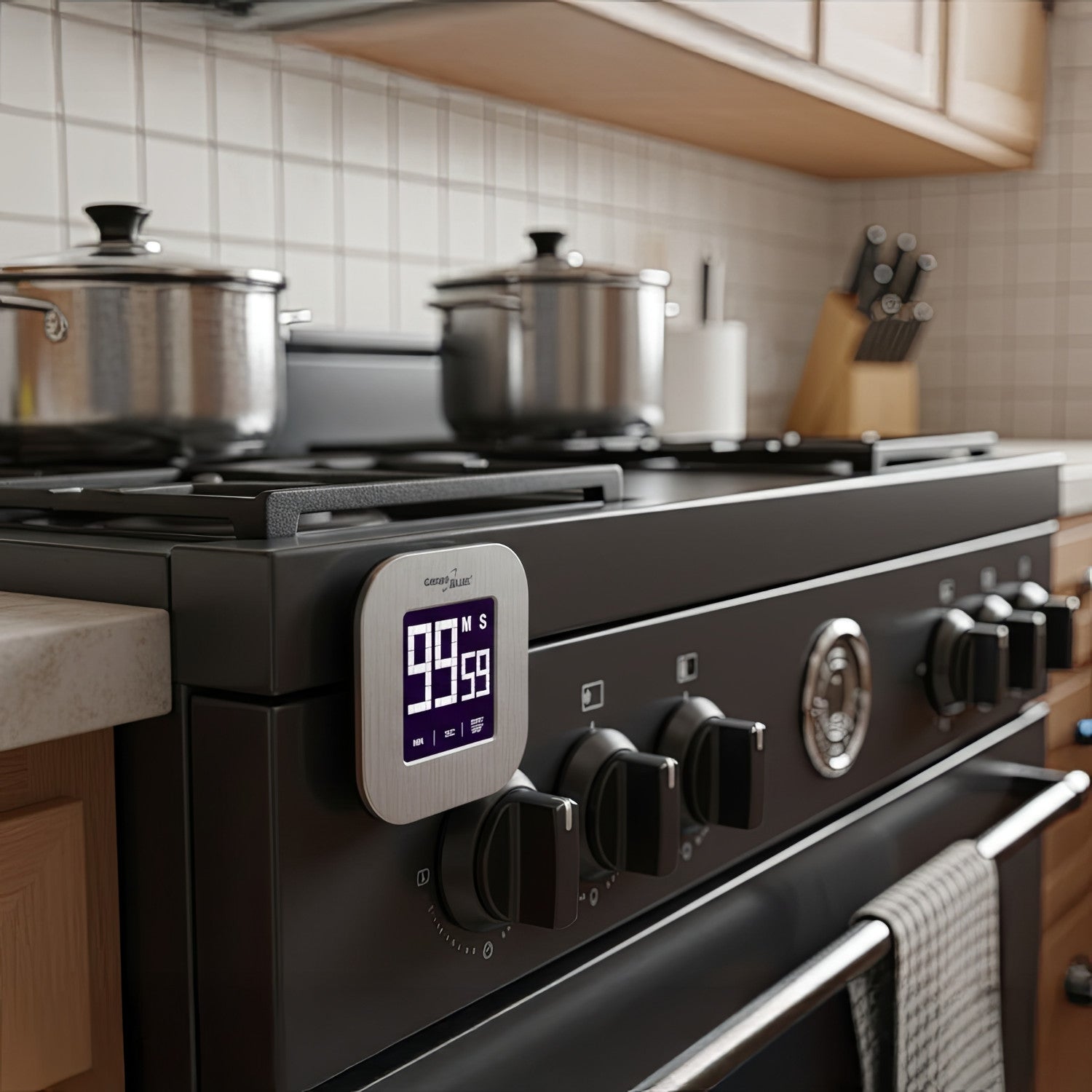 A highlight of this modern designed device is the touch screen as well as the magnetic back with which you can install the timer easily and practically anywhere or as an alternative with the foldable stand.