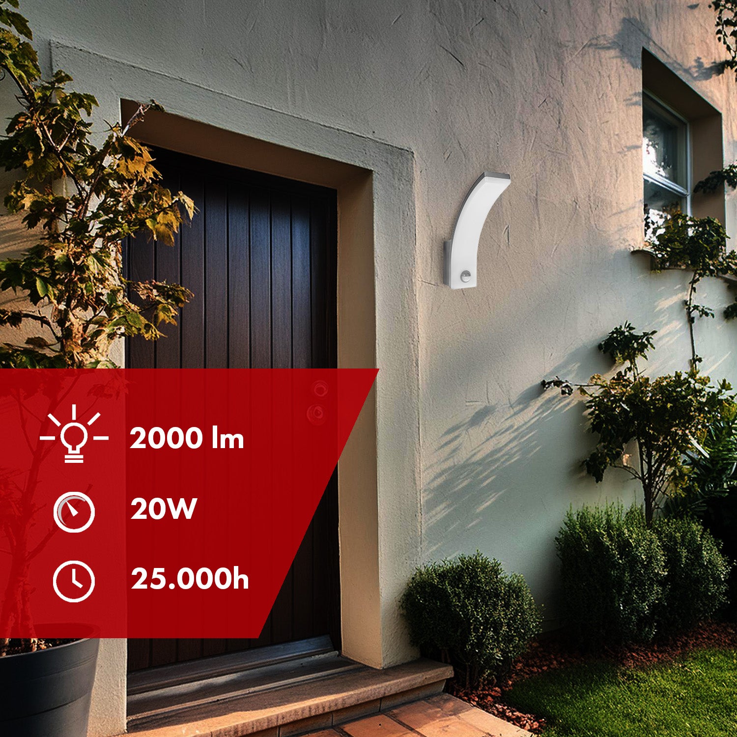 The Maclean MCE512 LED lamp is perfect for lighting homes, backyards, garage driveways, workshops, parking lots and warehouses. Equipped with a PIR motion sensor, it automatically turns on and off, increasing safety and saving energy. Adjustable lighting time and ambient light sensitivity allow you to customize it to your individual needs. The lamp is easy to install and operate, and its modern design blends in perfectly with various architectural styles.