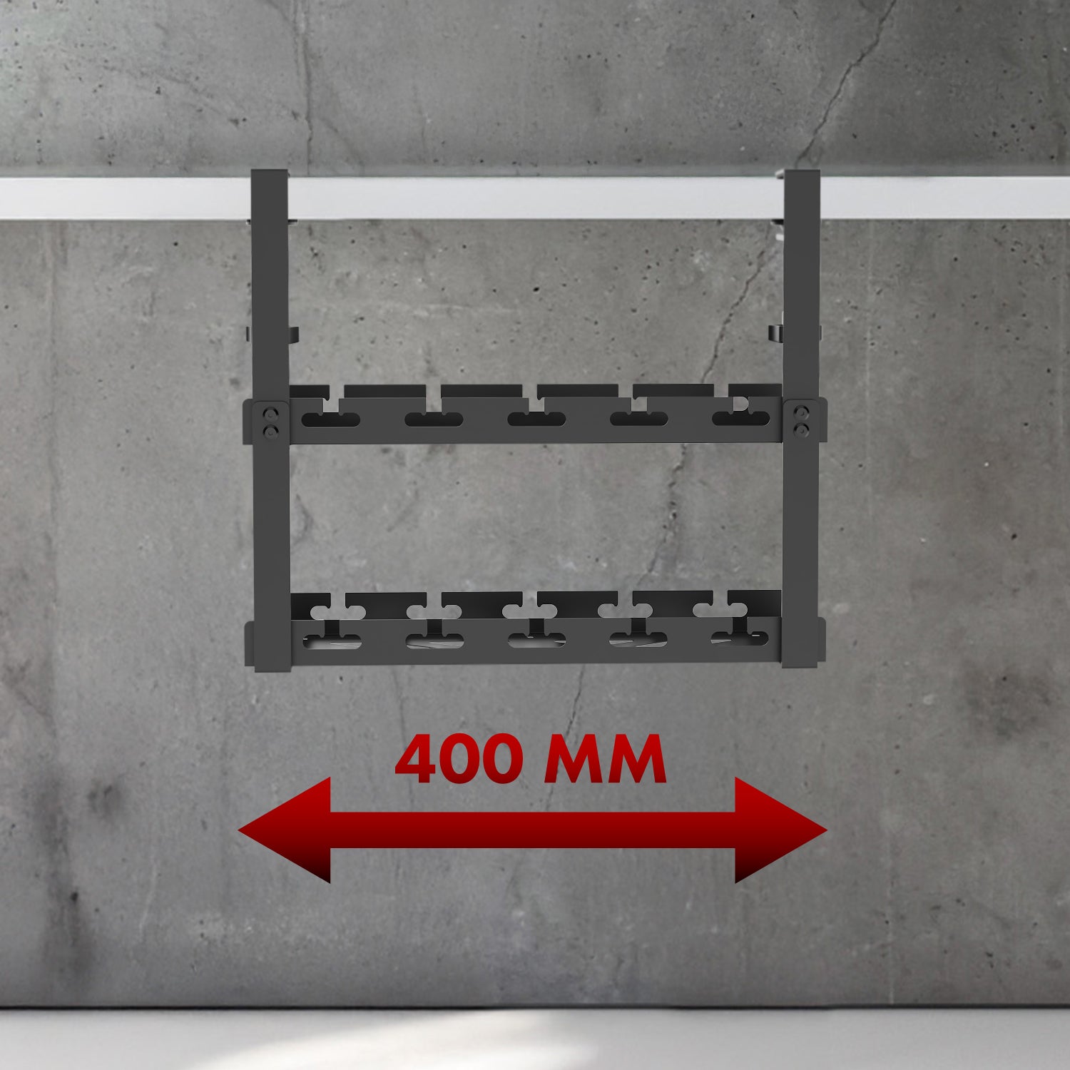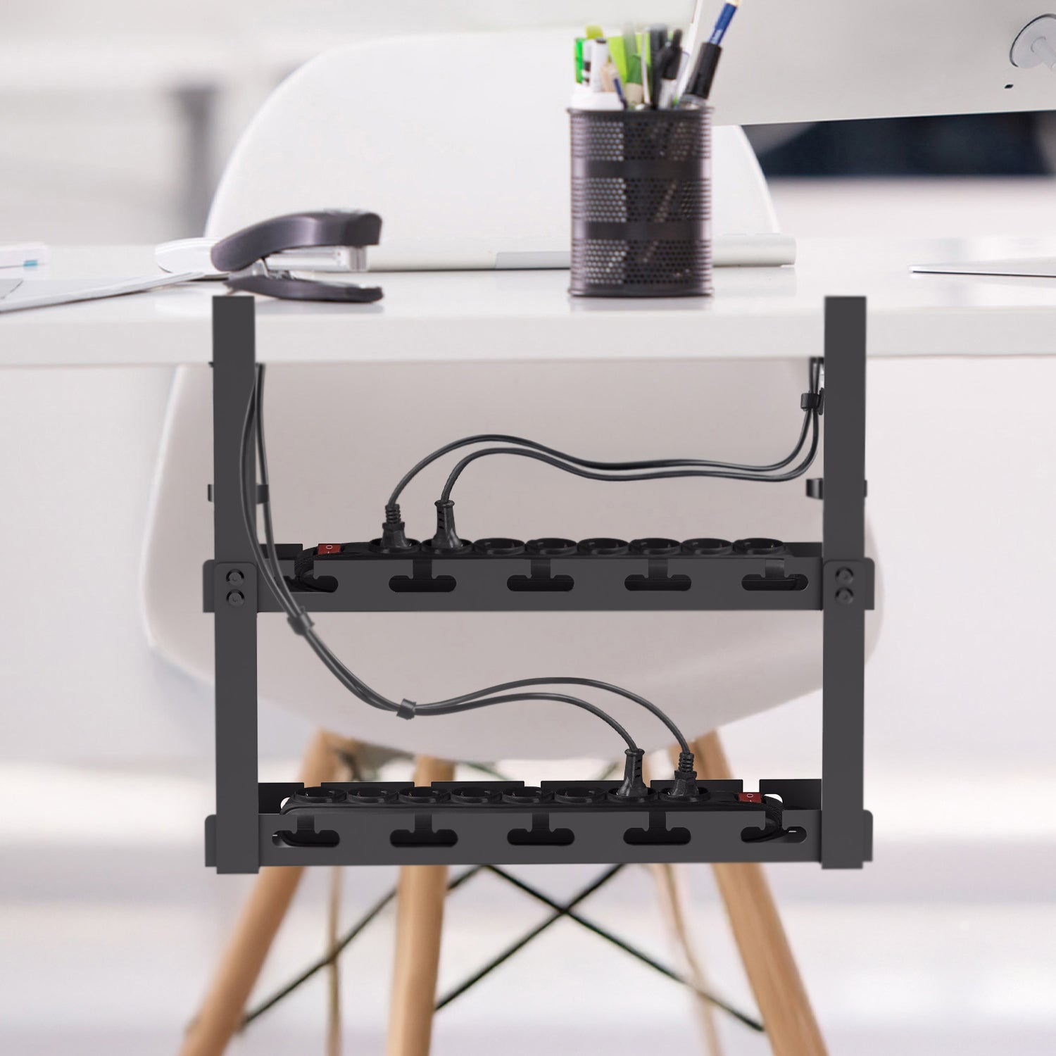 The two-level under-desk cable strip organizer is the perfect solution for those who need even more space to organize their cables and power accessories. With two levels, you gain the ability to mount not just one, but two power strips or additional devices such as power supplies, USB hubs or routers. The 40 cm length provides enough space to organize even an extensive cable infrastructure. Clamp mounting to the countertop eliminates the need for drilling, making the organizer easy to install and non-invasive to furniture.