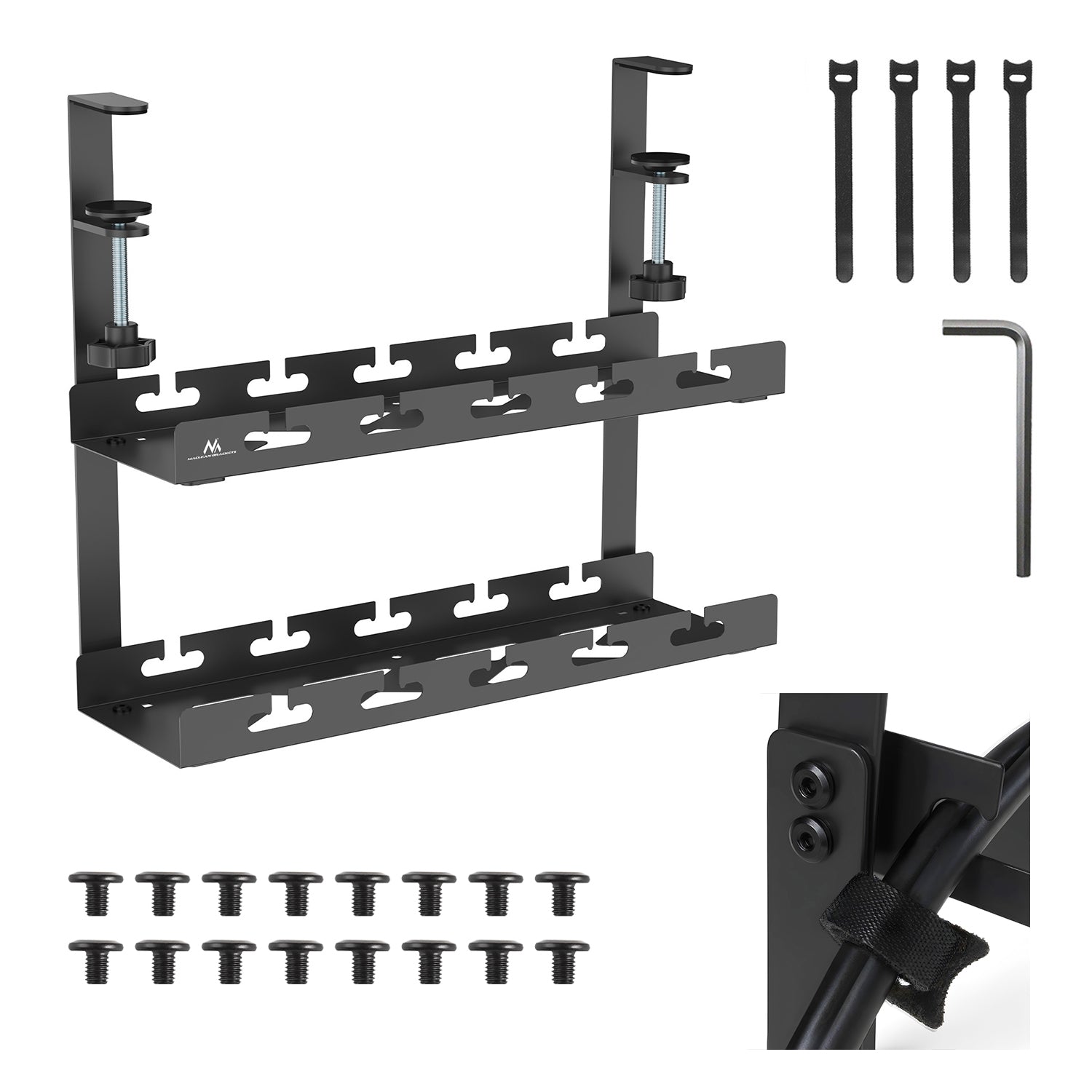 The design is equipped with practical pass-through holes that allow cables to be routed between levels and in different directions, making it significantly easier to manage cables and keep things tidy. The sturdy metal frame guarantees durability, and the aesthetic finish blends well with modern office and gaming spaces. Maclean MC-105 is a functional solution for anyone who wants to improve work ergonomics and avoid clutter under the desk.