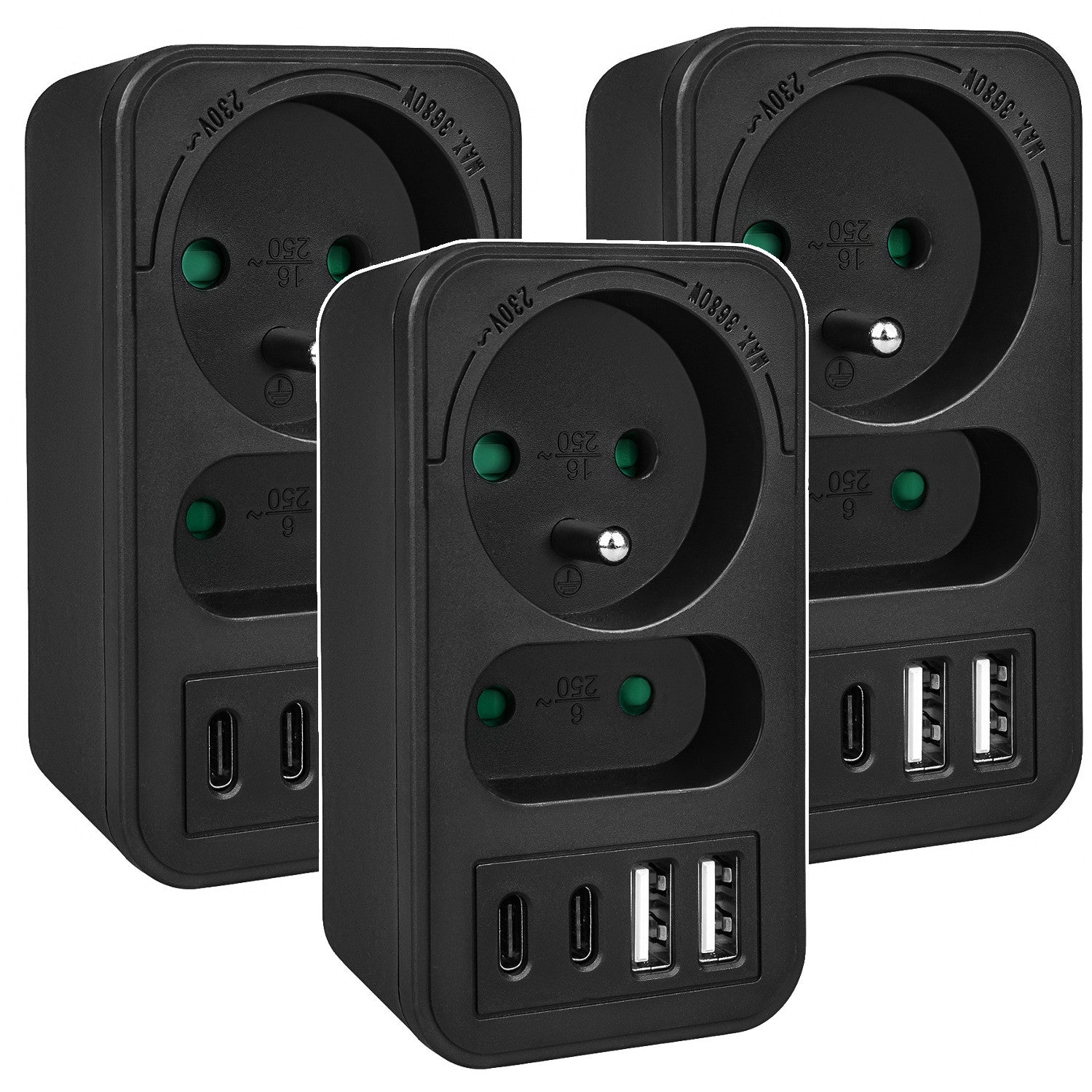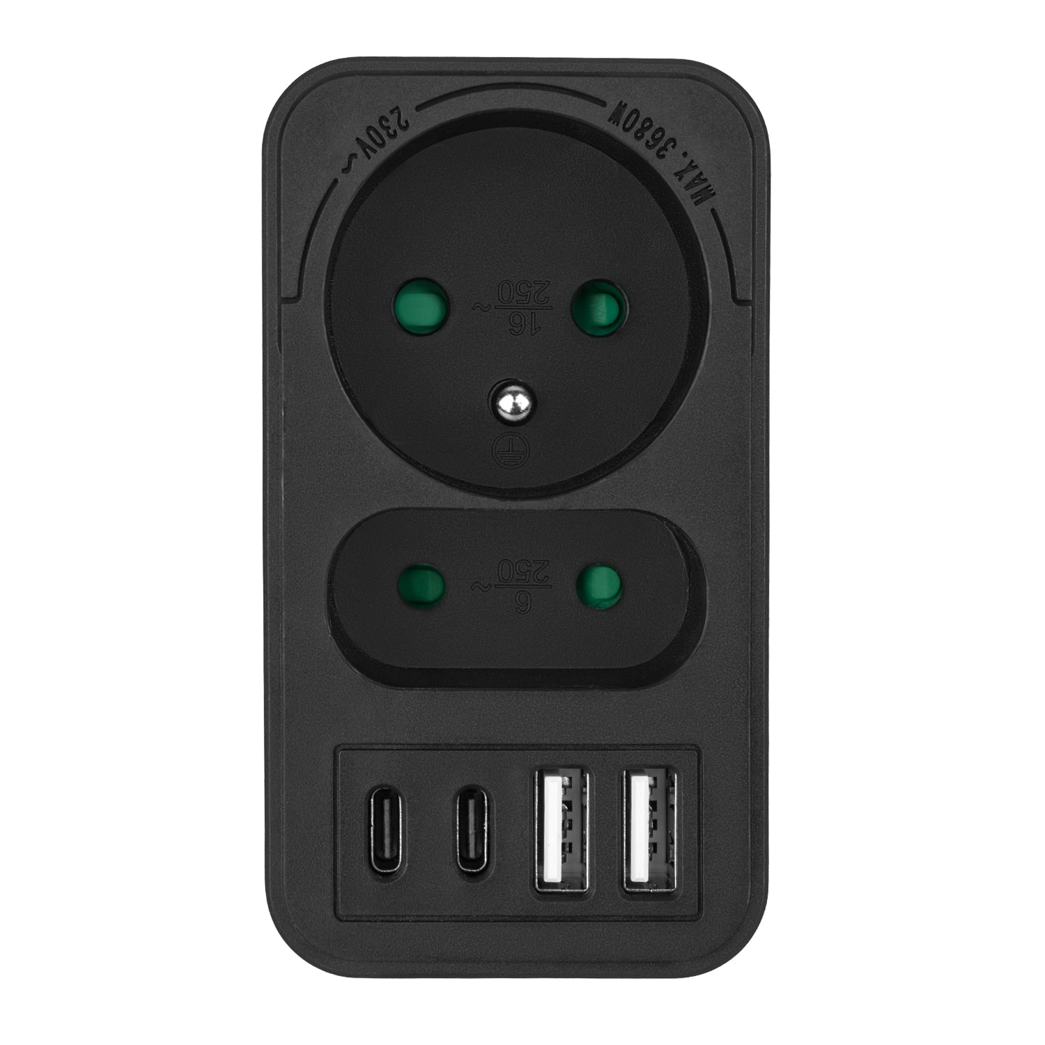 - Splitter with 2 sockets, 2xUSB A, 2xUSB C MCE249 F/B - 3 pieces