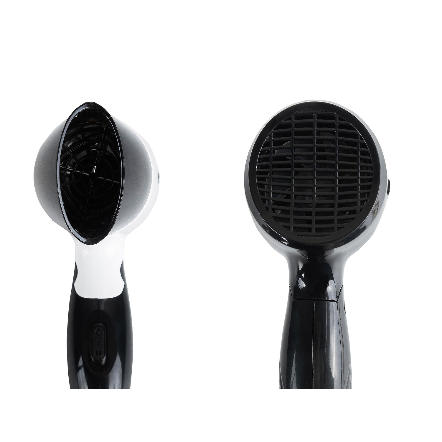 - The foldable handle allows space-saving storage and makes it easy to transport the hairdryer