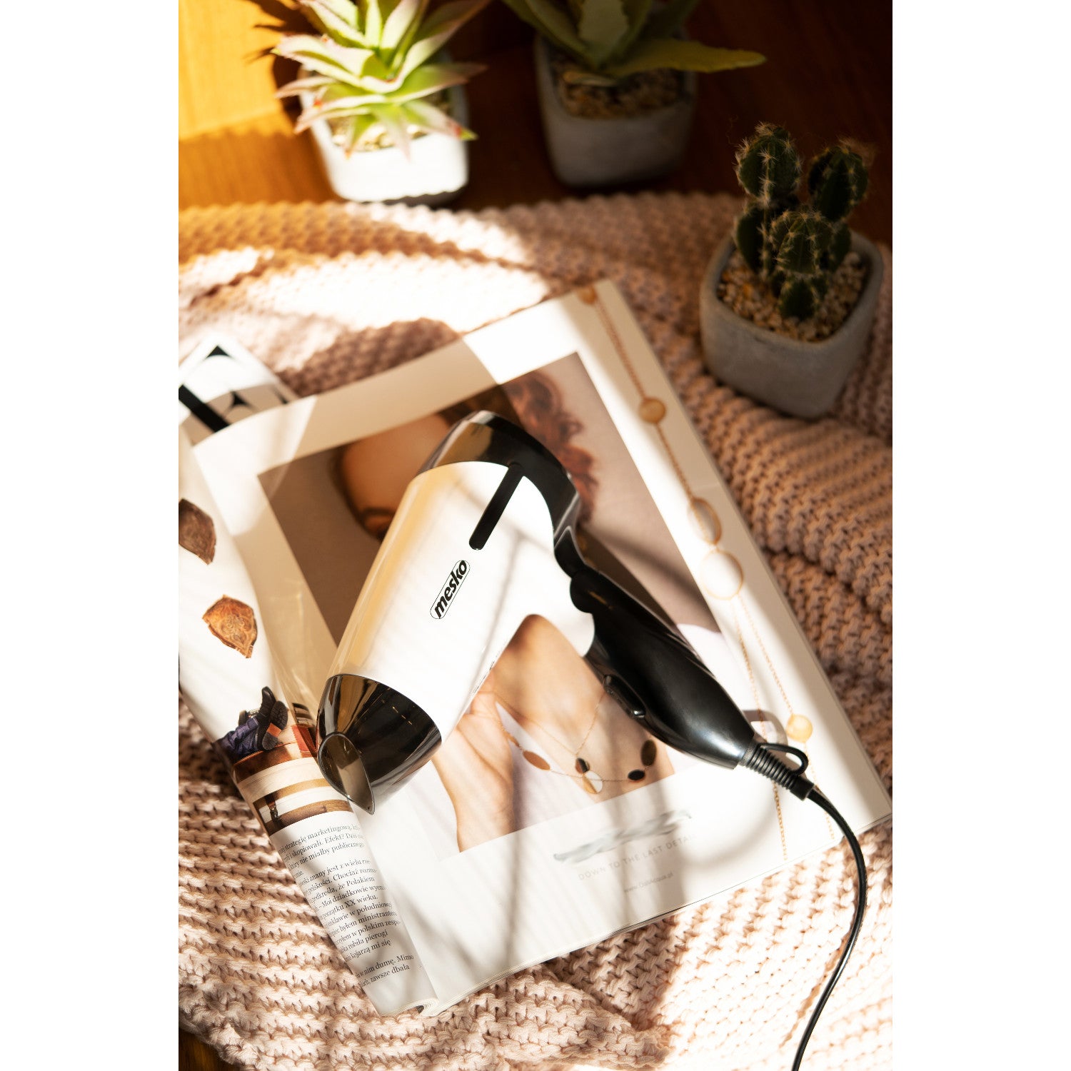 Mesko MS 2262 hair dryer with 1000W power dries your hair quickly and comfortably. With the help of the concentrator you direct the stronger hot air flow exactly where it is needed. The dryer has 2 power and temperature settings, is lightweight and handy. This makes it a handy ally when styling your hairstyle. It is equipped with a foldable handle, which makes it easy to store the dryer.