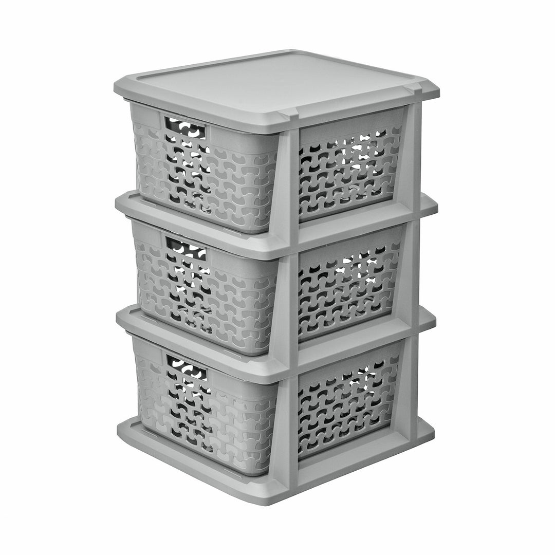 BranQ Rattan Rack with 3 Baskets Drawers with a Capacity of 7 Liters Storage Color Gray