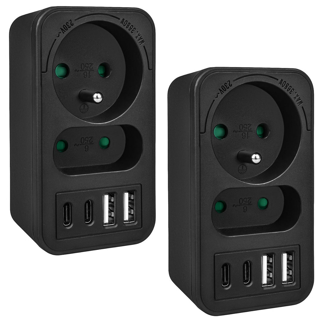 Current socket x2 + 4xUSB Maclean, splitter with 2 sockets, 2xUSB A, 2xUSB C PD 20W, 1x16A + 1x6A, MCE249 F/W, 2 pieces