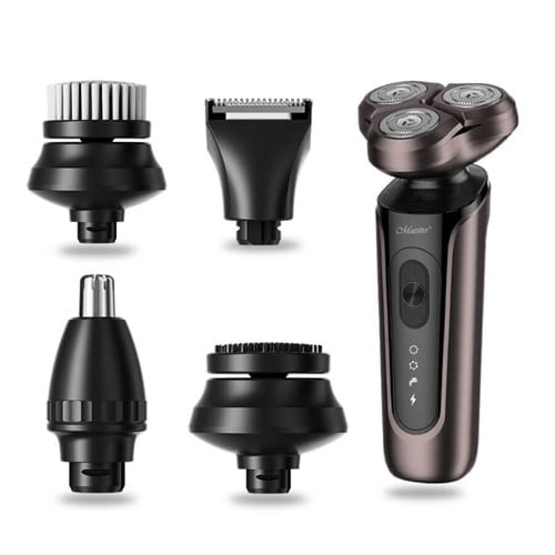 Maestro 5-in-1 shaving kit, shaver, nose trimmer, face brush, massage tip, hair trimmer, waterproof case, run time up to 60 minutes, MR-674