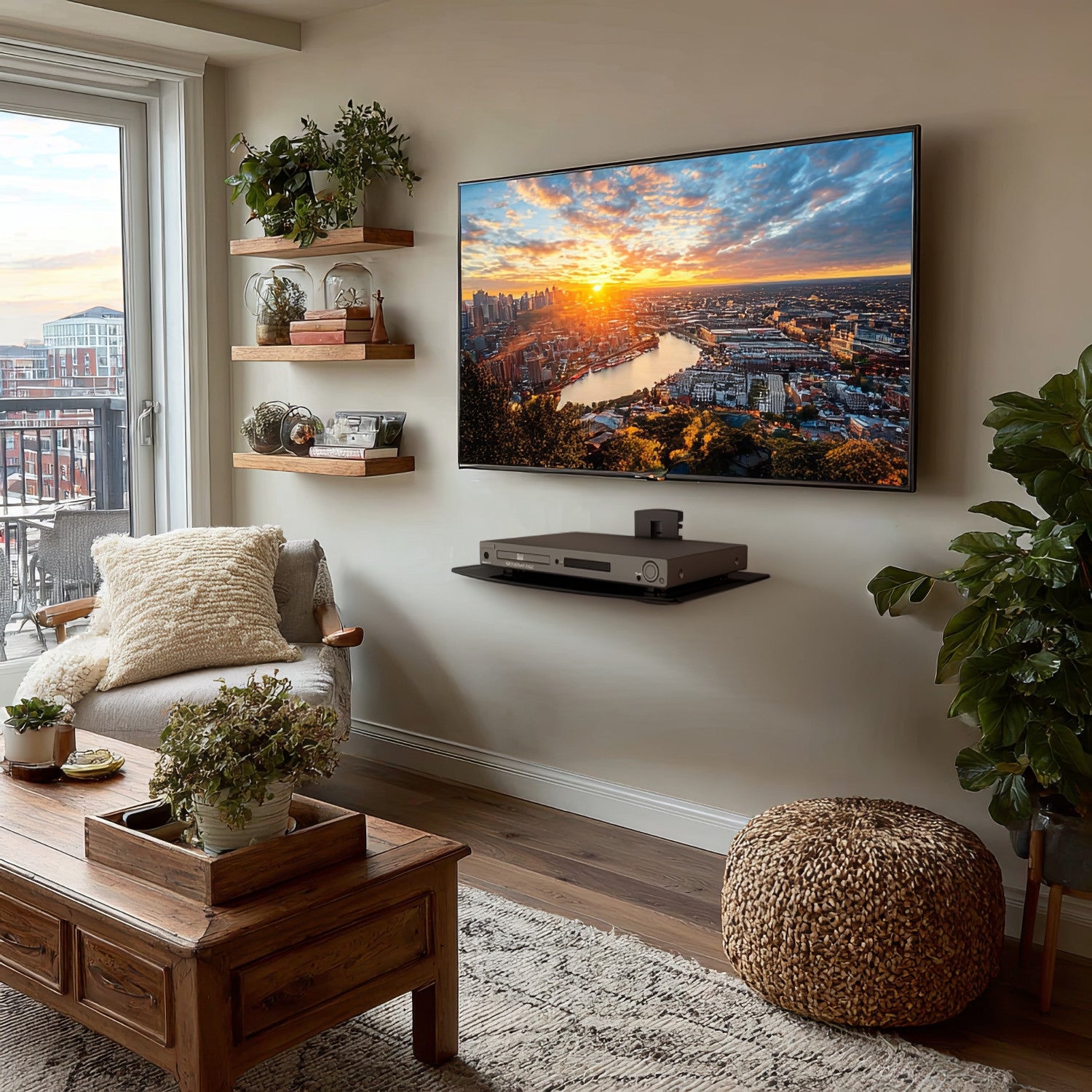 - Wenn Sie sich auf dem Hifi-Wandregal entschieden, haben Sie mehr Platz für verschiedene Hifi- und DVD-Komponenten an der Wand.