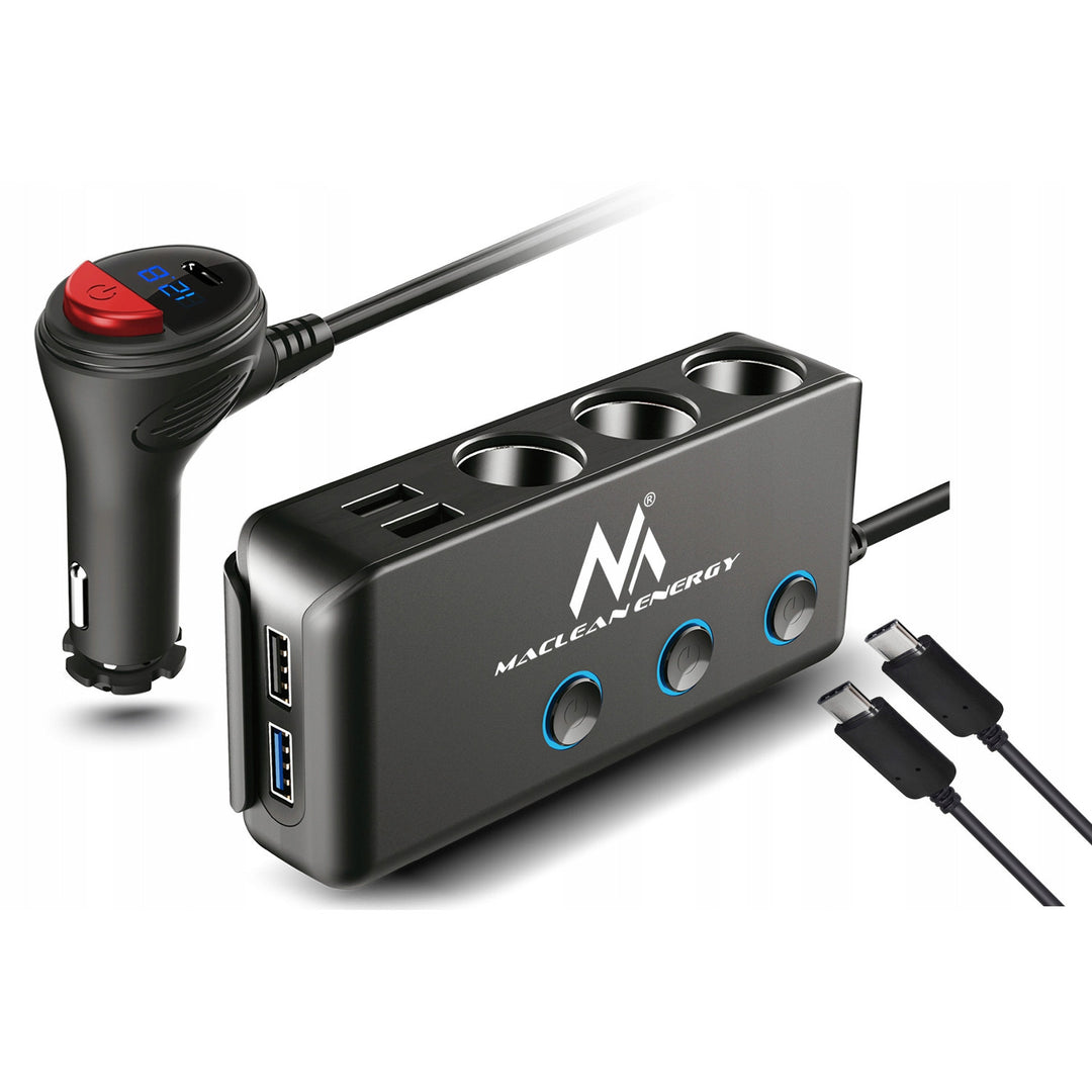 Maclean Steckdosenleiste, 4-Steckdosen-Verlängerungskabel + 3xUSB, 110-240V AC 50/60Hz, 2,1A max 2500W, 1,5m, schwarz, MCE392 B