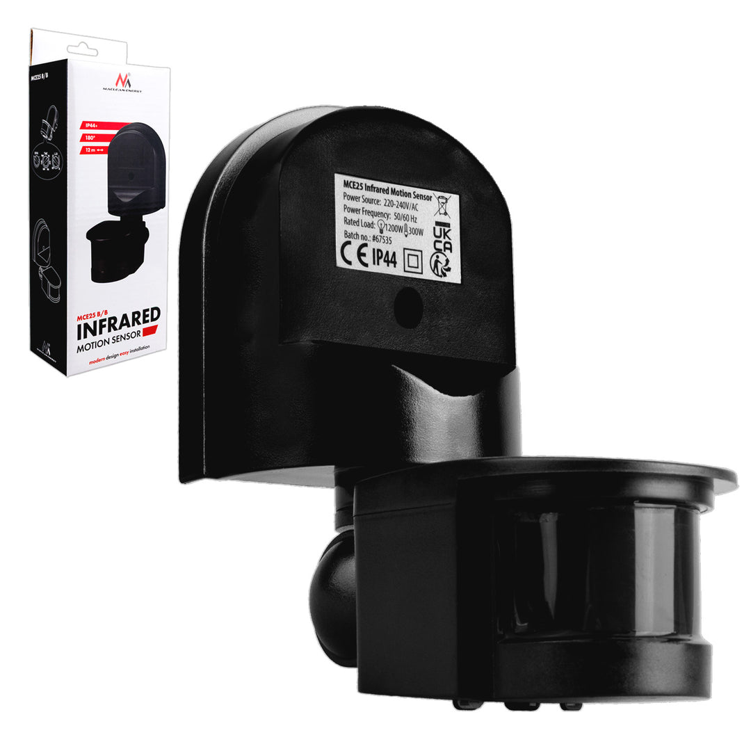PIR-Bewegungssensor Maclean, Infrarot, IP65, schwarz mit schwarzer Blende, Reichweite 12 m, MCE201 B/B