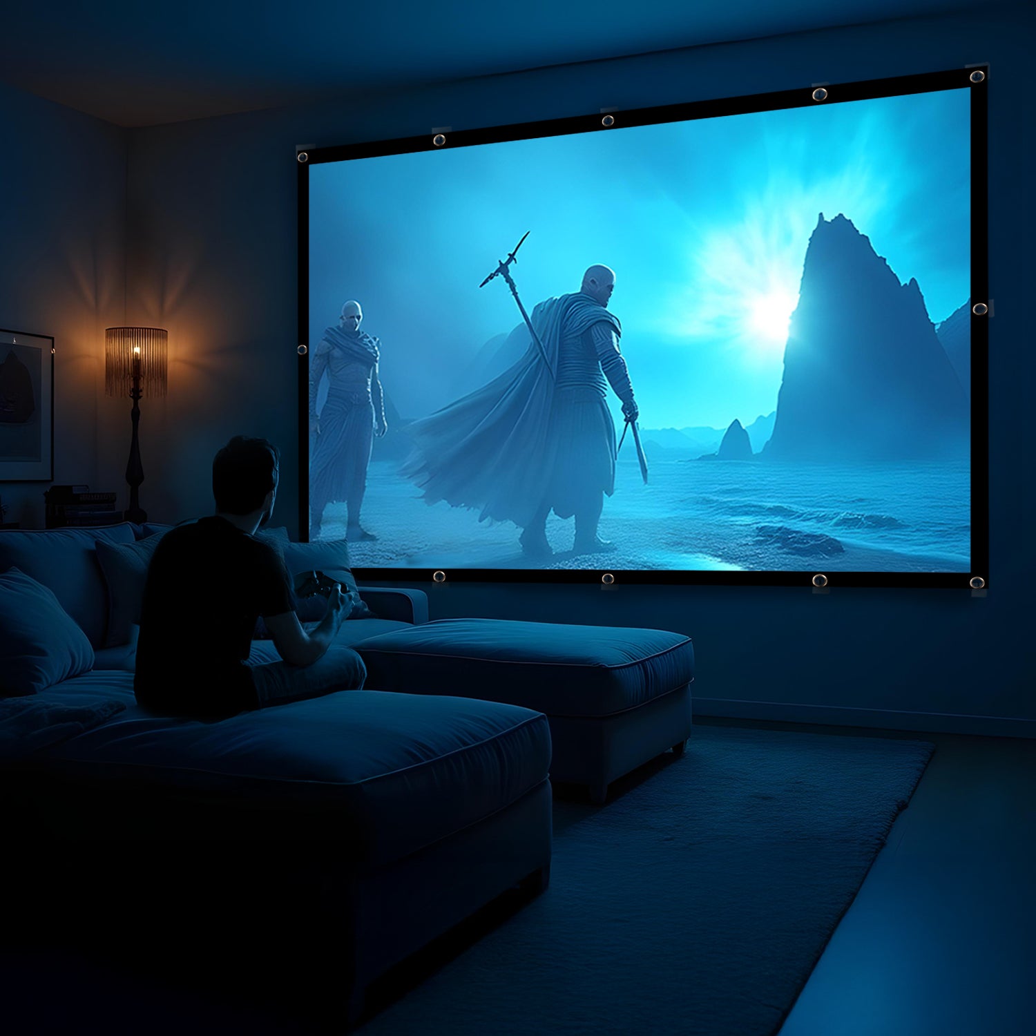 Die Leinwand wurde für maximale Benutzerfreundlichkeit entwickelt. Die Installation ist extrem einfach und schnell - hängen Sie die Leinwand einfach an den mitgelieferten Haken auf oder befestigen Sie sie mit Aufhängeseil. Dank dieser Flexibilität bei der Installation ist die Leinwand ideal für den Einsatz zu Hause, aber auch im Büro, im Konferenzraum, in der Schule oder sogar bei Outdoor-Veranstaltungen.