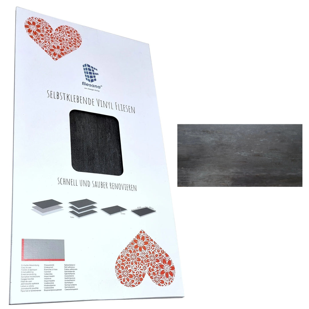 Fliesana selbstklebende Wand- und Bodenfliesen, 3er-Set, wasserfest, Natursteindesign, Farbe dunkelgrau