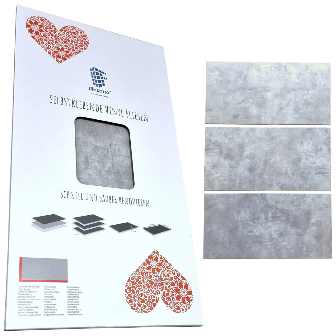 Fliesana selbstklebende Wand- und Bodenfliesen, 3er-Set, wasserfest, hellgraues Betonmuster