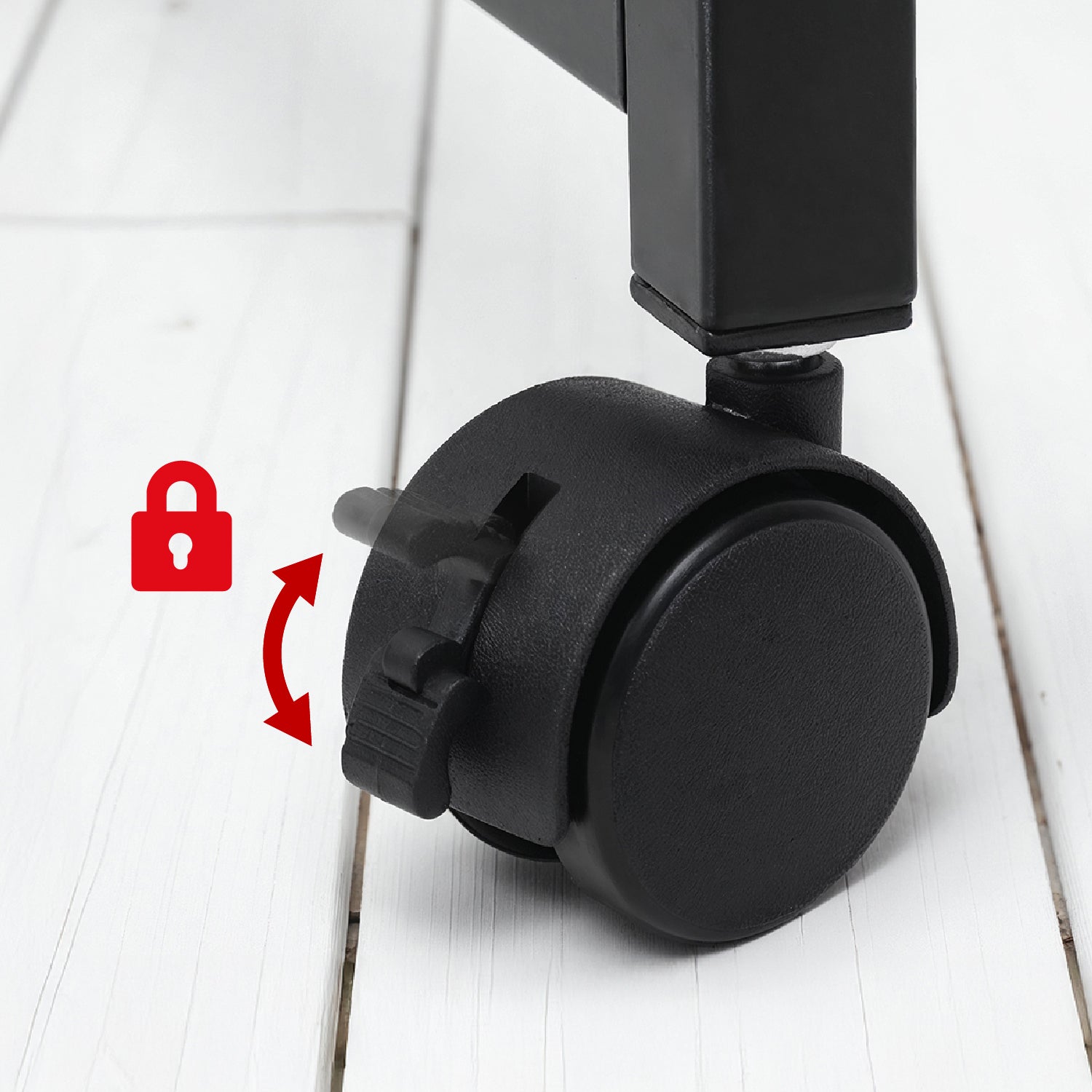 - Sechs feststellbare Rollen für Mobilität und stabile Positionierung des Schreibtisches