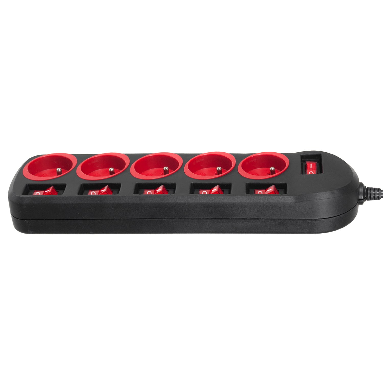 Steckdosenleiste mit 5 Steckdosen, ermöglicht den gleichzeitigen Anschluss von bis zu fünf vollwertigen Steckern. Sie verfügt über eine Kindersicherung, einen beleuchteten Netzschalter und separate Schalter für jede Steckdose.