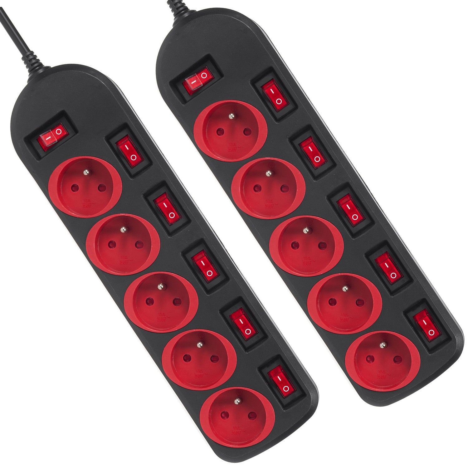 Maclean Steckdosenleiste, 5-poliges Verlängerungskabel, mit Schalter, 250VAC/10A, 1,5m, MCE204, 2 Stück