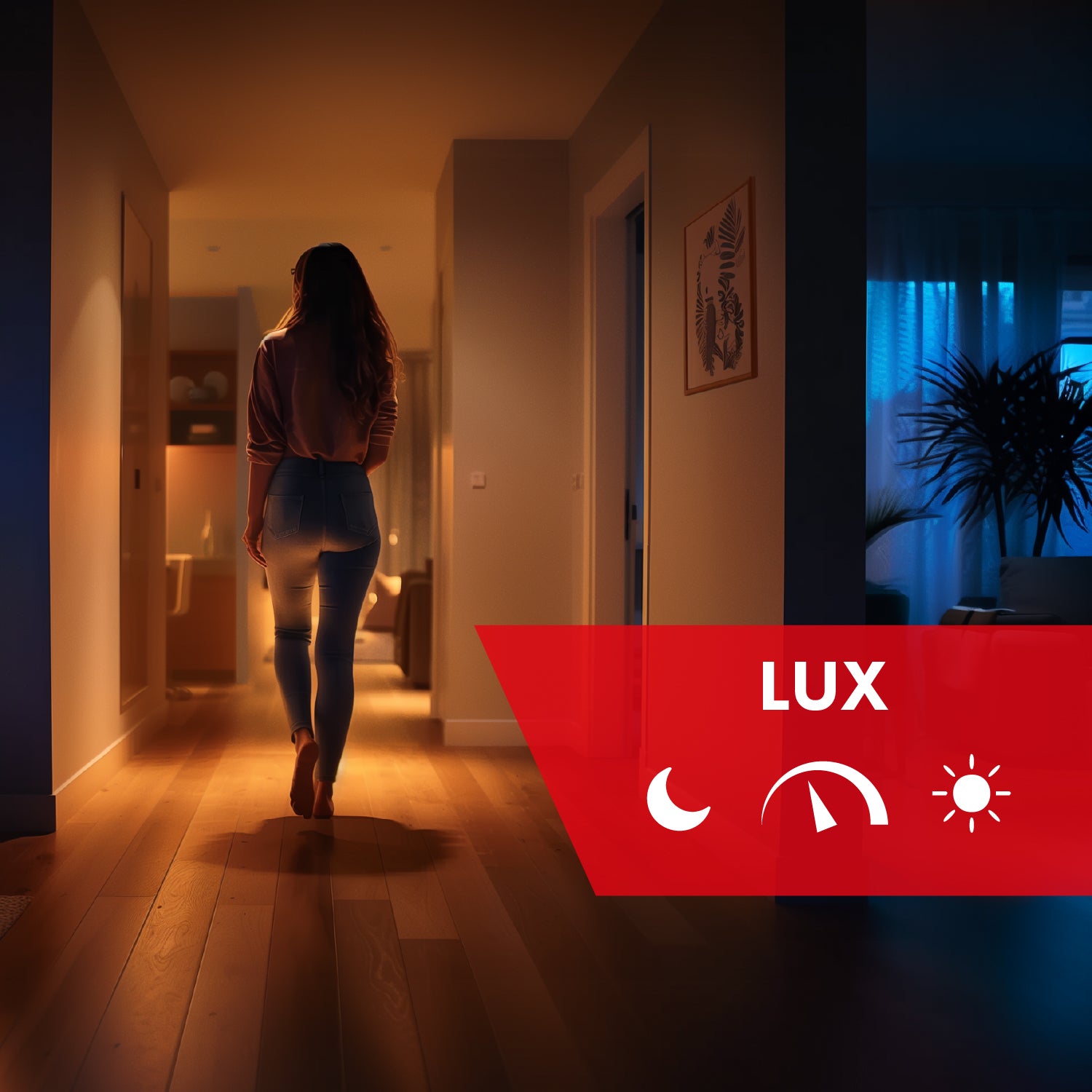 - Macht die manuelle Steuerung der Beleuchtung überflüssig und senkt den Stromverbrauch