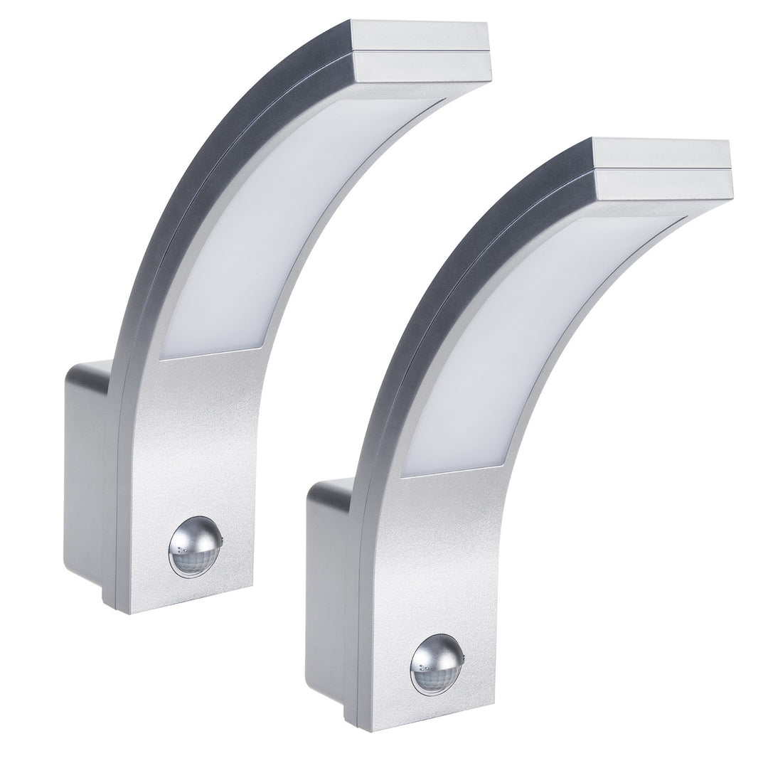 Maclean sensor de movimiento Lámpara LED, sensor de movimiento PIR, plata, 10W, IP54, 750lm, blanco neutro (4000K) MCE244 S, 2 piezas