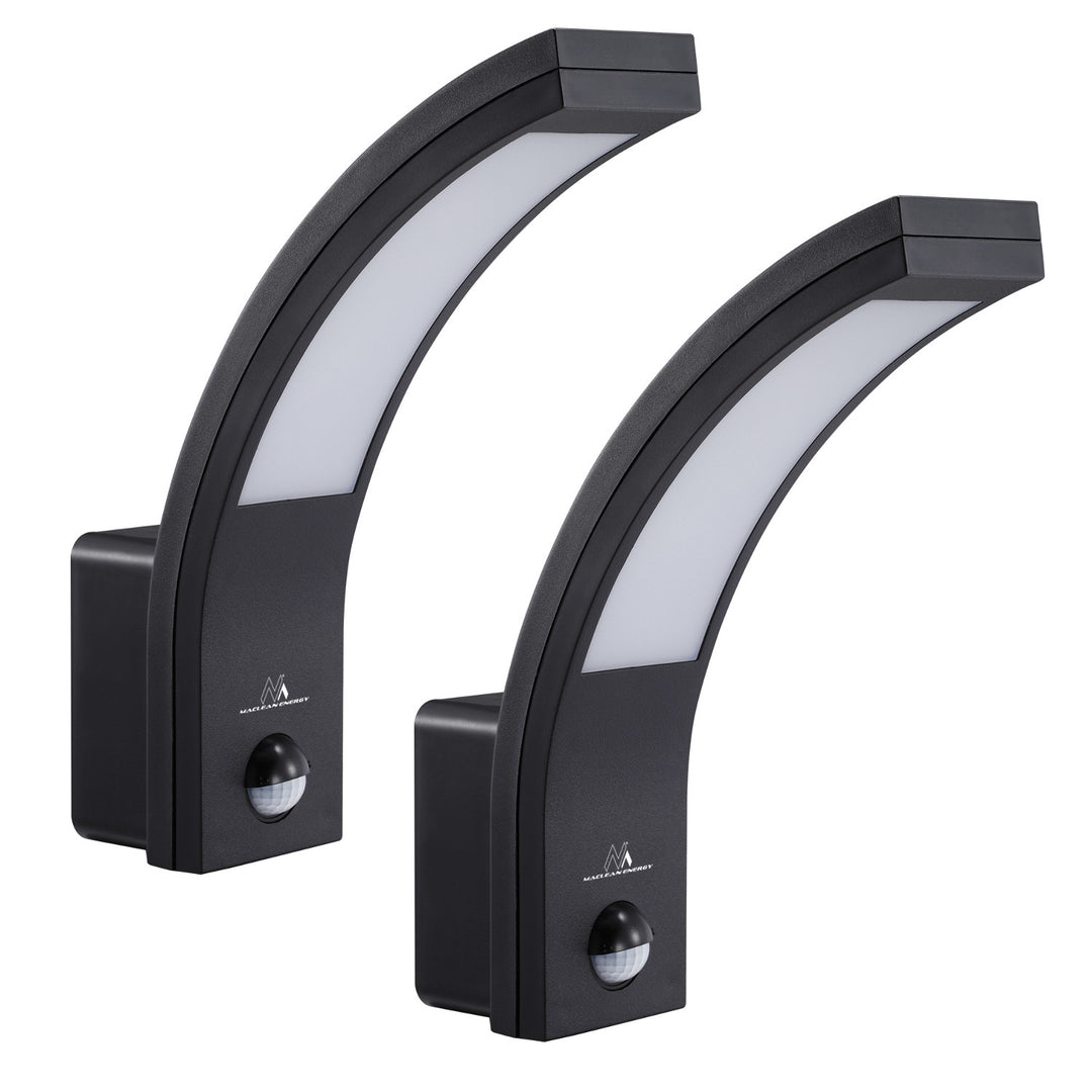 Detector de movimiento Maclean Lámpara LED, sensor PIR, negro, 10W, IP54, 750lm, blanco neutro (4000K) MCE244 B, 2 piezas