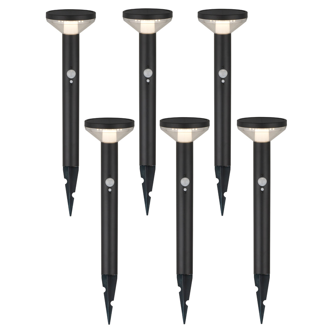 Maclean MCE465 B Solar LED Light, con sensor, 3 modos, enchufable, Li-ion 18650, IP44, 3.7V, 1200 mAh, Negro, 6 piezas