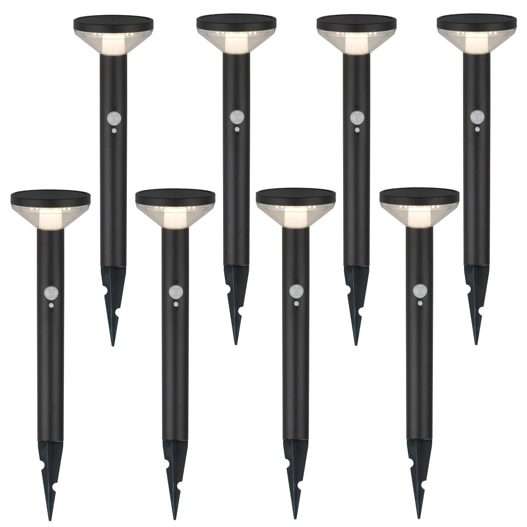 Maclean MCE465 B Solar LED Light, con sensor, 3 modos, enchufable, Li-ion 18650, IP44, 3.7V, 1200 mAh, Negro, 8 piezas