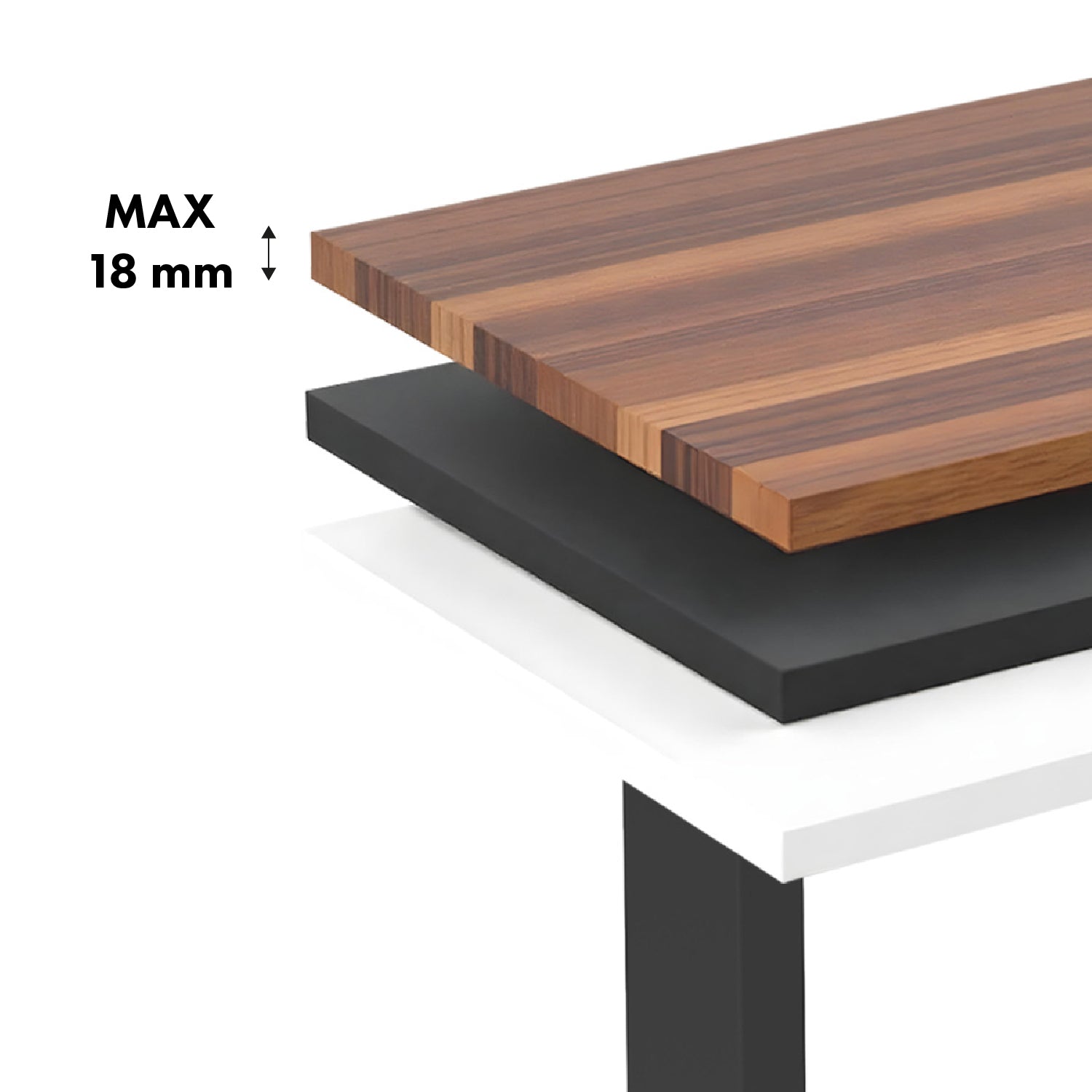 - Diseñado para tableros de mesa con dimensiones: 1200~1500 x 600~800 mm, grosor: hasta 18 mm