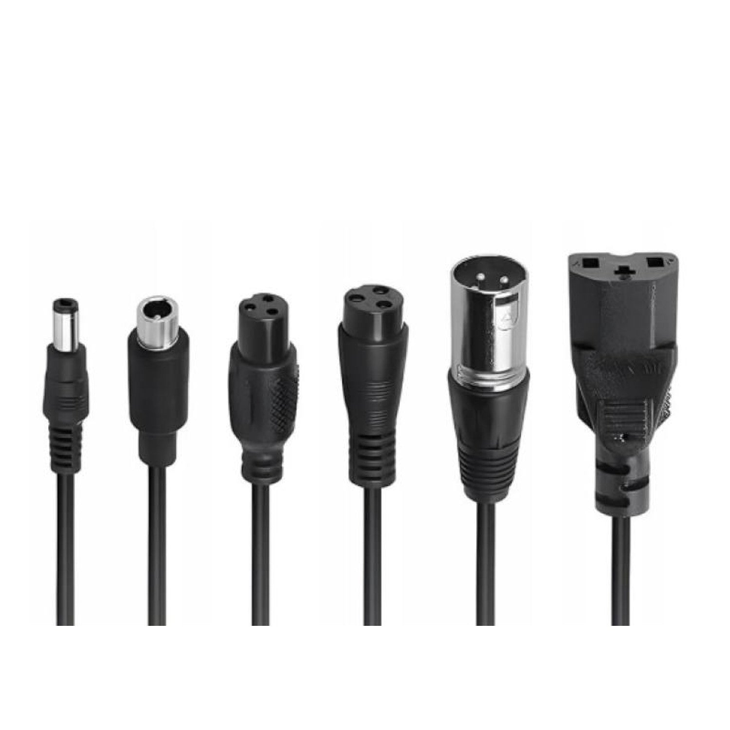 El cargador de scooter eléctrico LXG95 está equipado con una completa gama de 6 terminales intercambiables (incluyendo pin, XLR, antena 9mm/12mm, DC5.5). Esto lo hace adecuado como cargador universal para muchos modelos. ¡Evitarás problemas de adaptación! Recuerde: asegúrese de comprobar la compatibilidad de la clavija con su dispositivo antes de la compra para garantizar un ajuste perfecto.