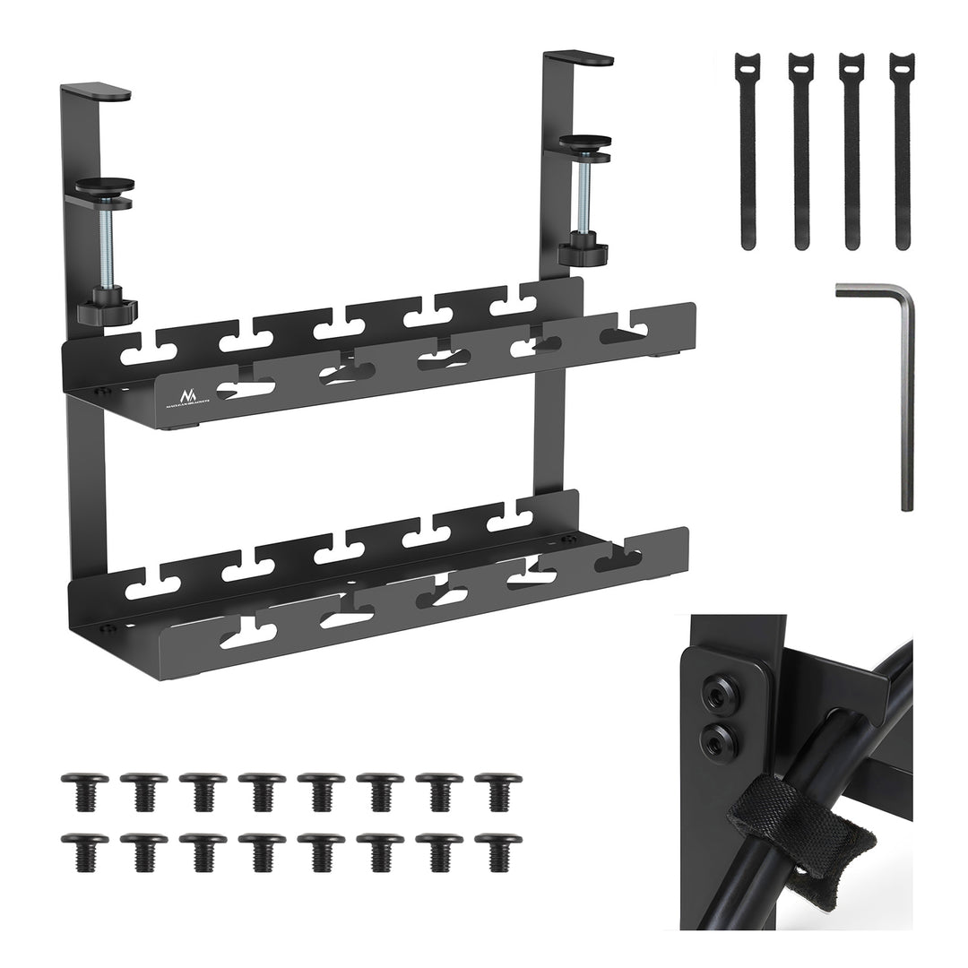 Maclean under-desk cable organizer, max load 5kg, 2 levels, black, MC-104 B
