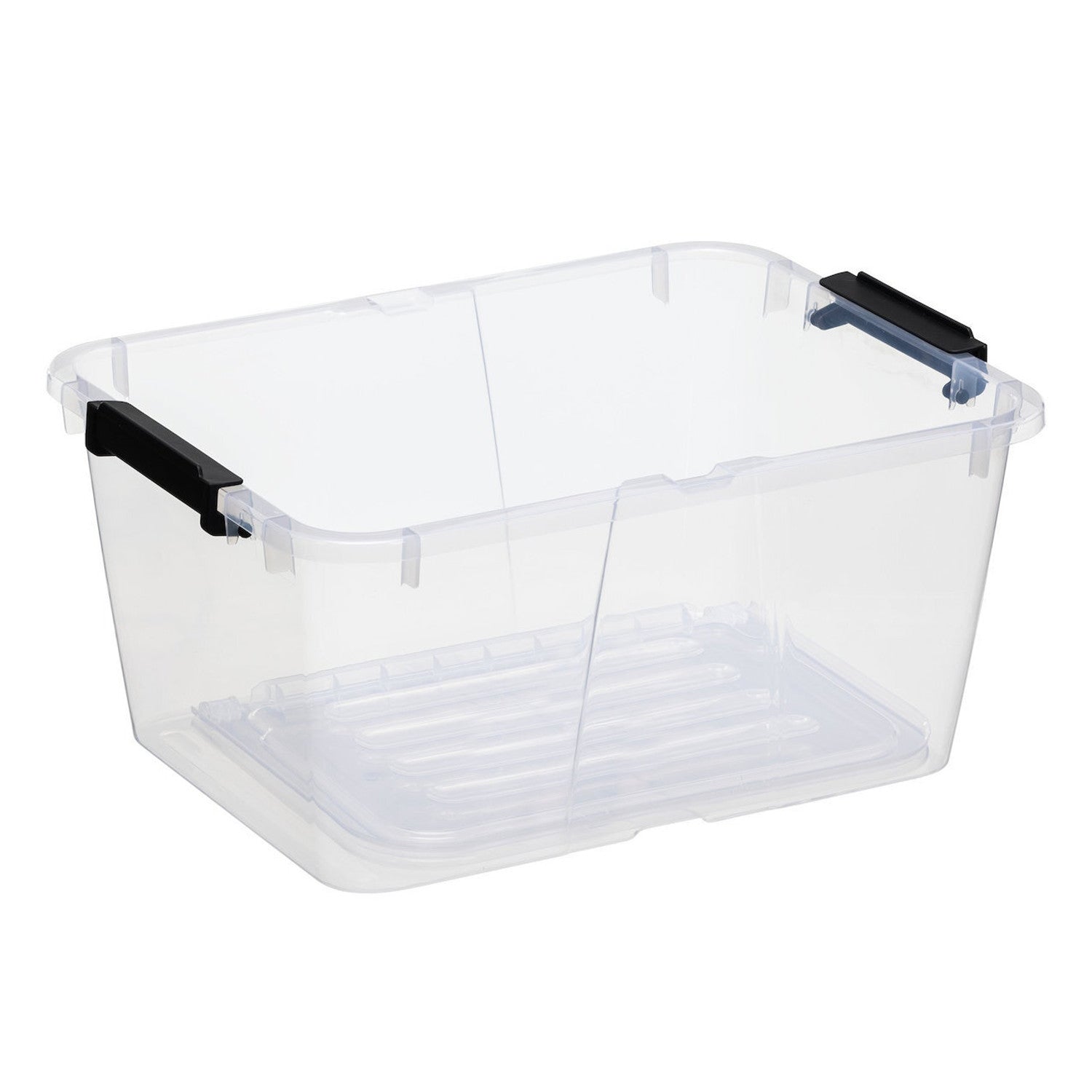 Plast Team Home Box Flex 15L double lid container, folding lid, safety clips, transparent, 23010800
