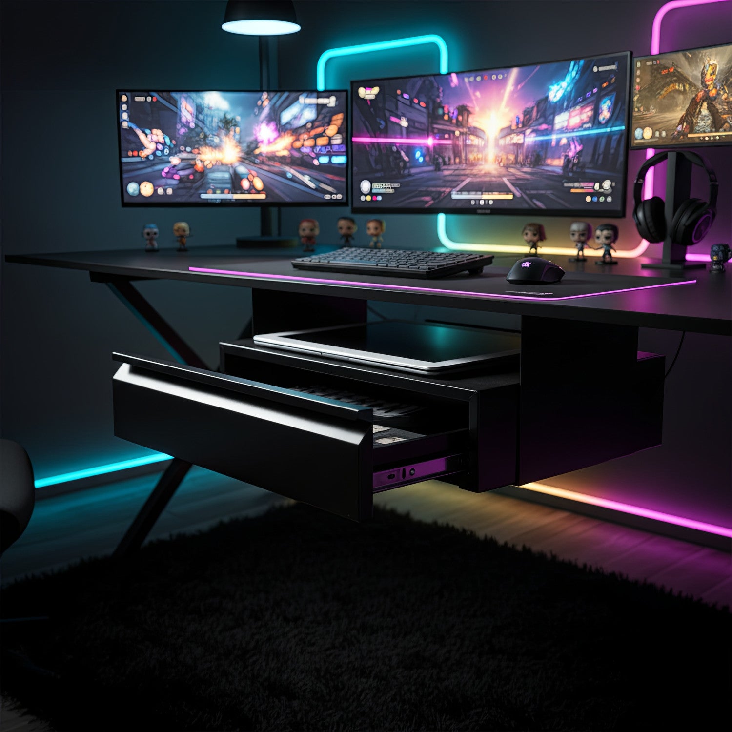 - Cassetto solido ed estensibile fissato alla scrivania o al piano del tavolo