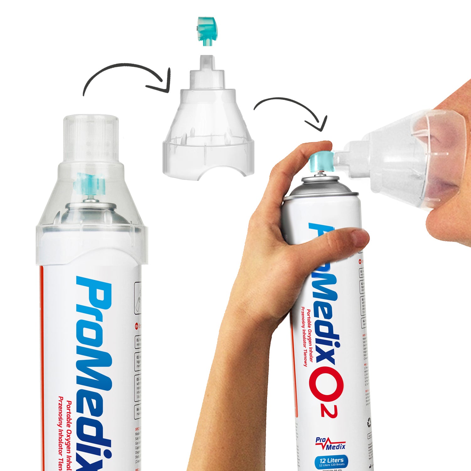 Portable 99.4% oxygen inhaler Promedix 12L PR-994 spray is 12 liters of oxygen concentrated in a small sized can.