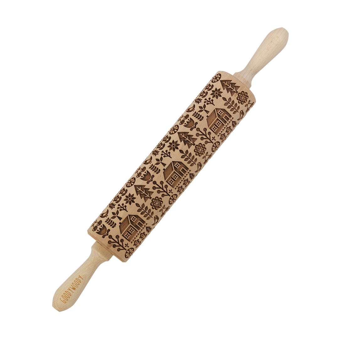 Goody Woody engraved cake roller, 46 cm, beech wood, Scandinavian style