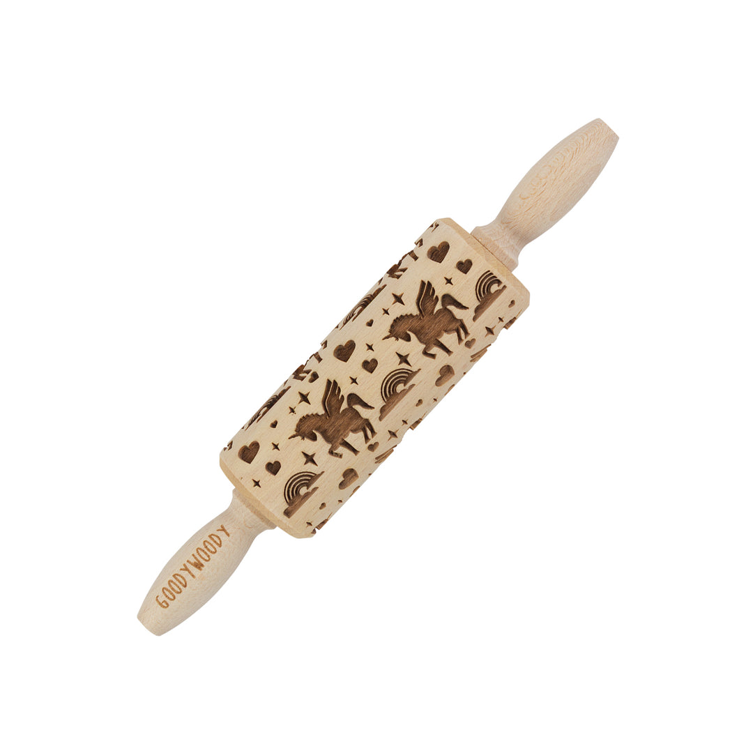 Goody Woody embossed rolling pin engraved cake roller, 23.5 cm, beech wood, unicorn design
