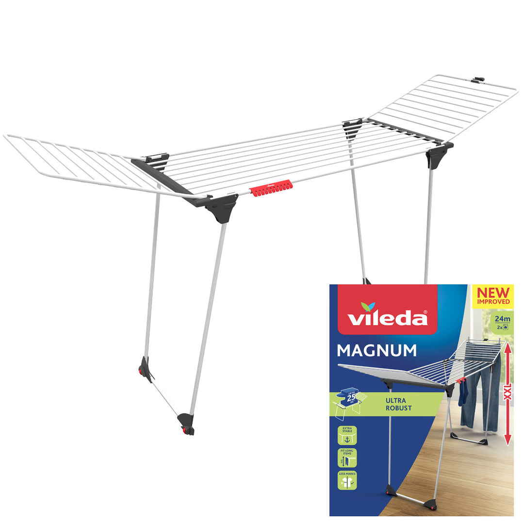 Vileda Magnum 24m Standing Laundry Airer, High Quality product, with wheels, folding.
