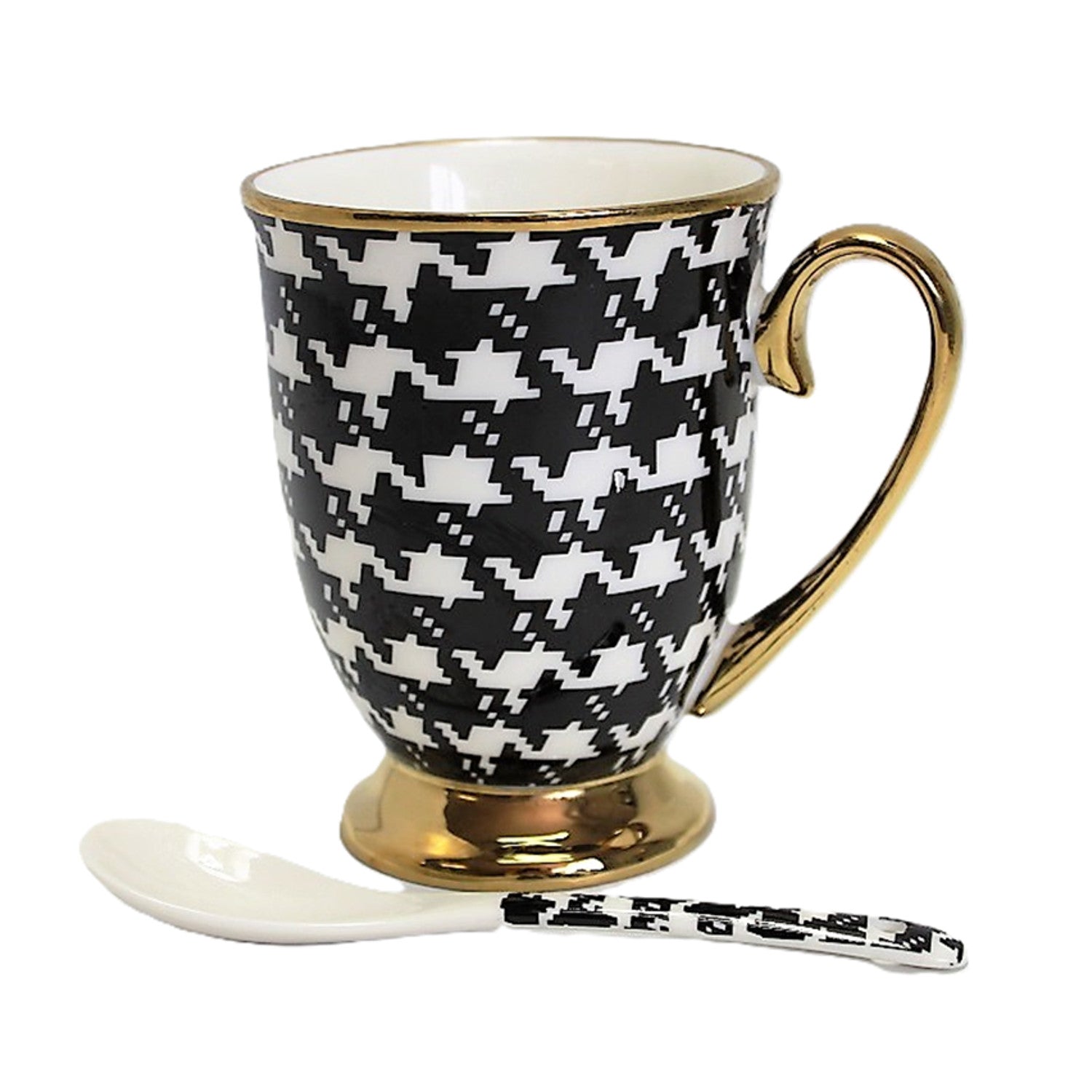 The product is carefully packaged in a decorative box that features the same peplum pattern as the mug. This is not only a functional package, but also a beautiful decoration that will make the presentation of the mug even more attractive. Perfect for a gift for a loved one or as an addition to your mug collection. This Bone China porcelain mug in a black and white pepita pattern, produced for Queen Isabell, is the perfect combination of exceptional quality, stylish design and elegance.