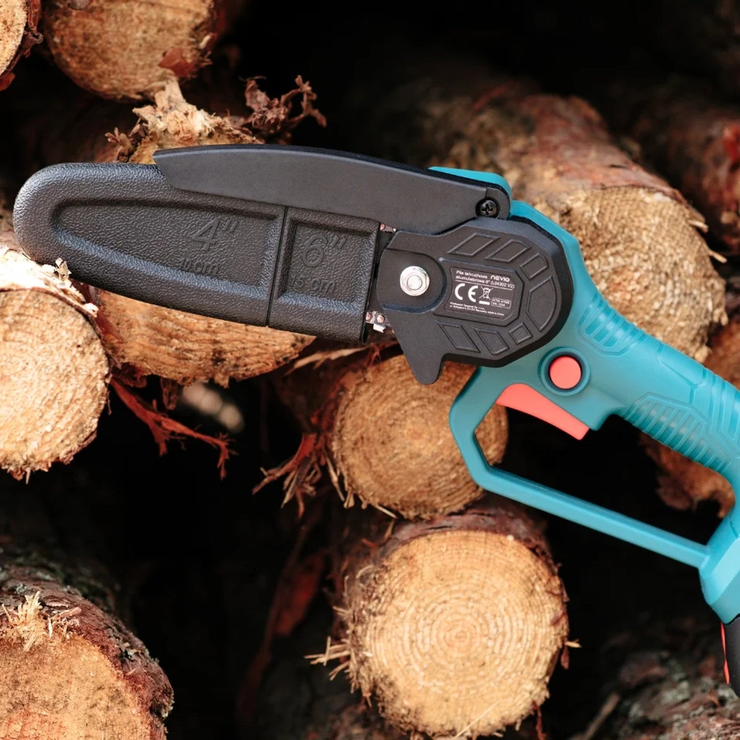 De L04302 is uitgerust met een 6-inch zaagblad en precisieketting, waardoor de zaag gemakkelijk kan worden gebruikt op plaatsen waar traditionele, grotere apparaten onhandig zijn. Het compacte ontwerp maakt het gemakkelijk om takken, constructiehout of tuinonderdelen te zagen, zodat u maximale controle hebt over elke beweging.