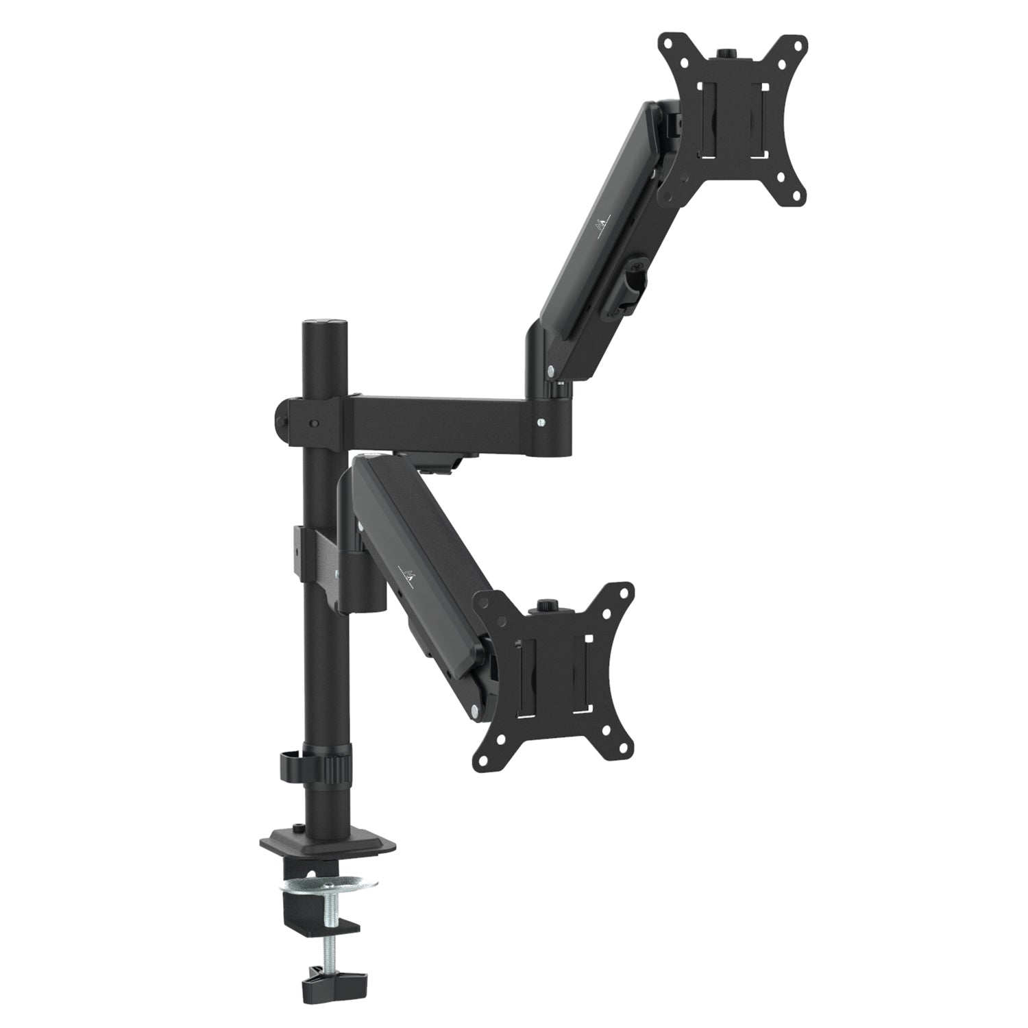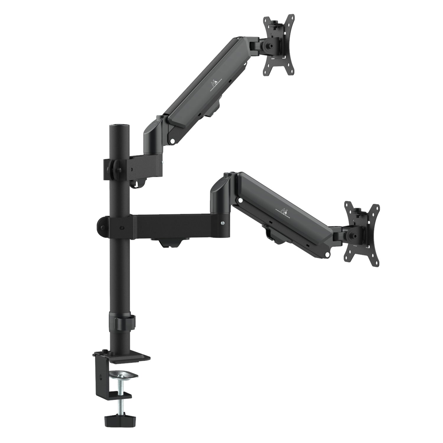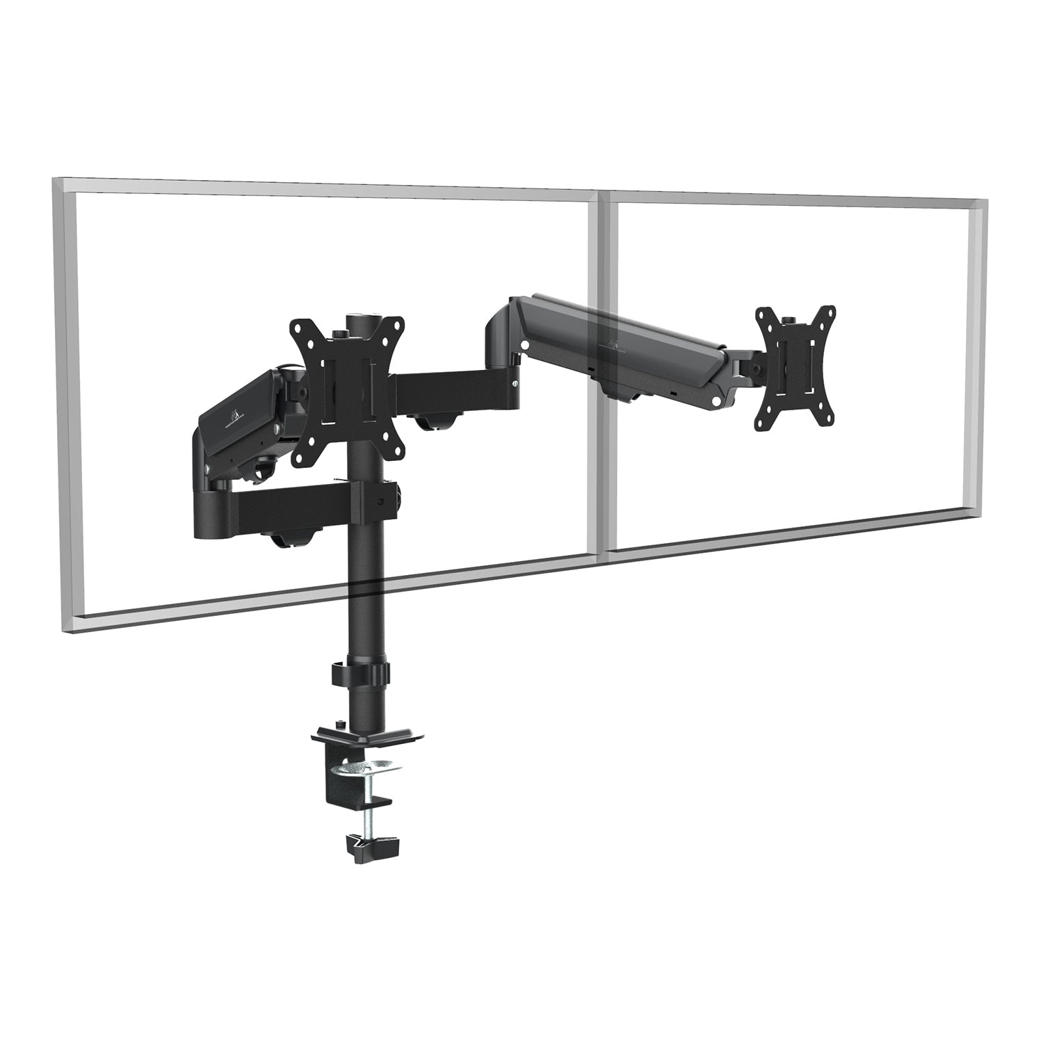 - Twee onafhankelijke armen met gasveren voor oneindige hoogteverstelling van elke monitor