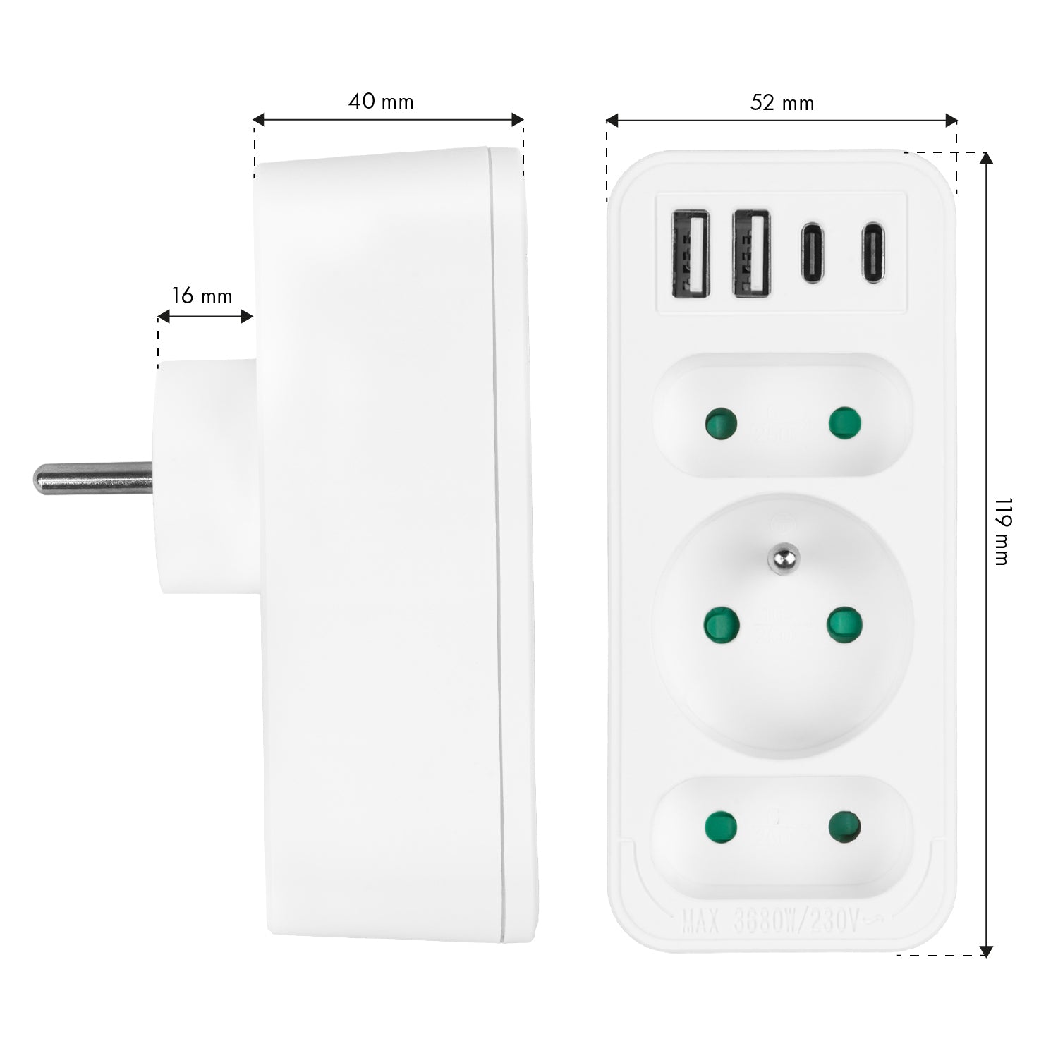 - Splitter with 3 sockets, 2xUSB A, 2xUSB C MCE248 F/W