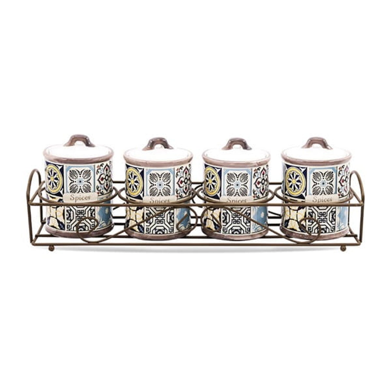 Holiday in Porto Maestro ceramic container set, 5 items, 200ml capacity, ideal for spices, with metal stand, MR-20005-04CS