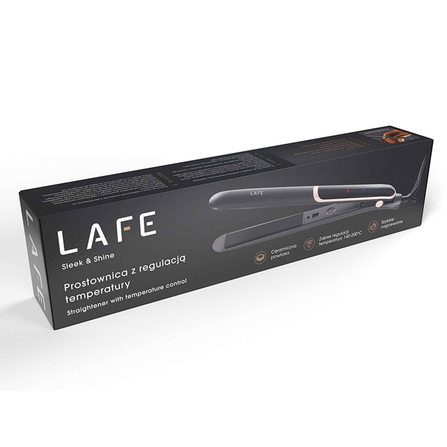 LAFE Sleek & Shine Straightener is a hair straightener that combines functionality and gentleness to deliver perfectly smooth hair in no time. Thanks to its ceramic coating, precise temperature control and convenient control functions, you can easily adjust its performance to your hair type, achieving a natural shine and long-lasting smoothing effect.