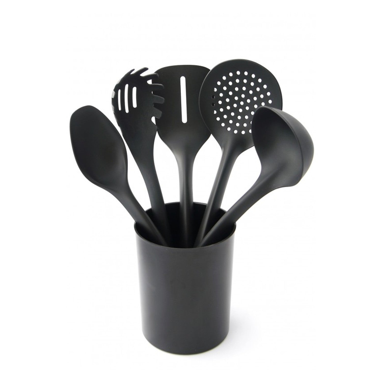 - Set of 5 kitchen tools + 15 cm container black Practic Handy